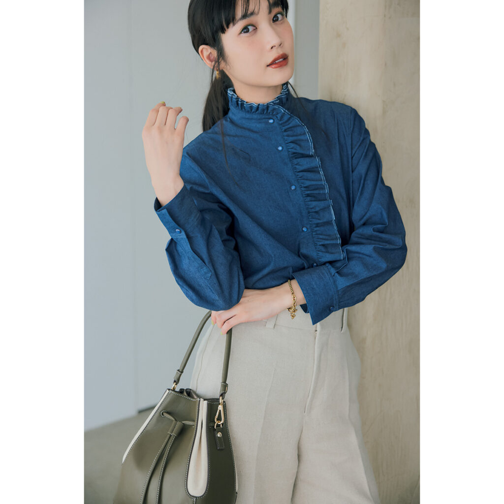 新顔のちょい甘デニムブラウスでオフィカジの旬度を底上げして
