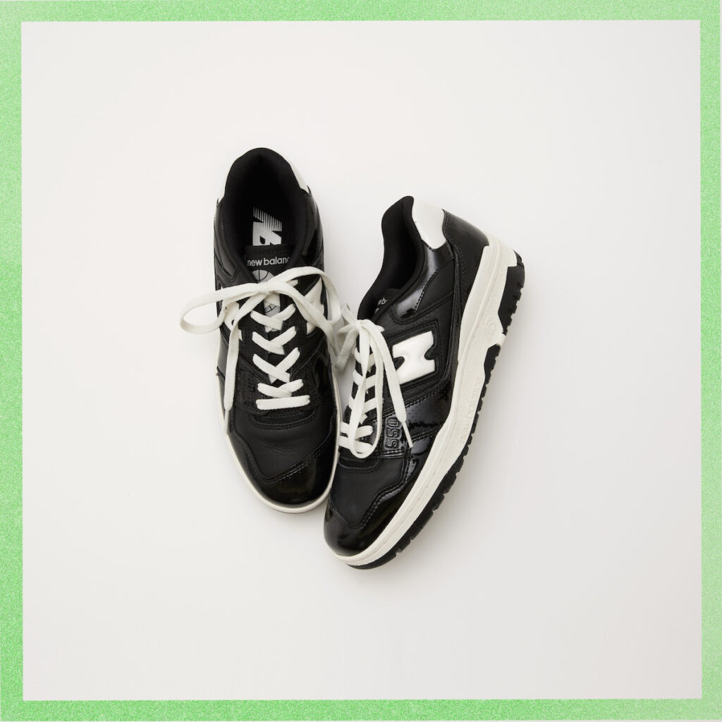 近年ニューバランスの中でも人気がスゴい、80年代のバスケットボールシューズを復刻した「550」はカラバリ豊富です。光沢感ある素材にスポーティな要素が加わり、こなれて見えるモノトーンデザインがよそ行き仕様にもよく合う新作は要チェック。