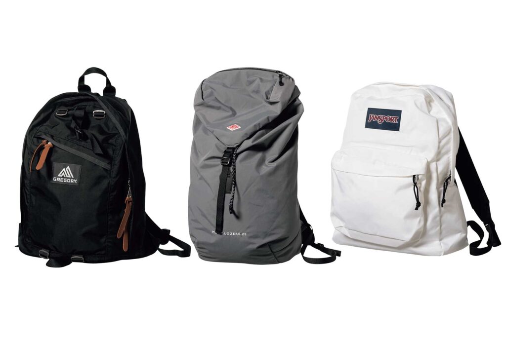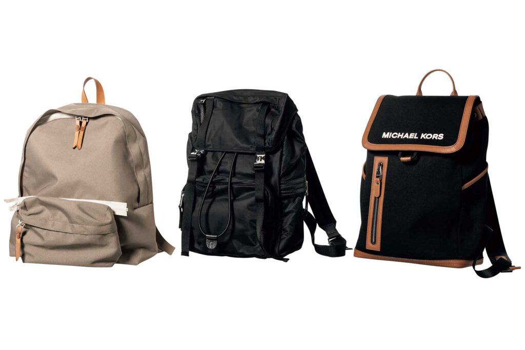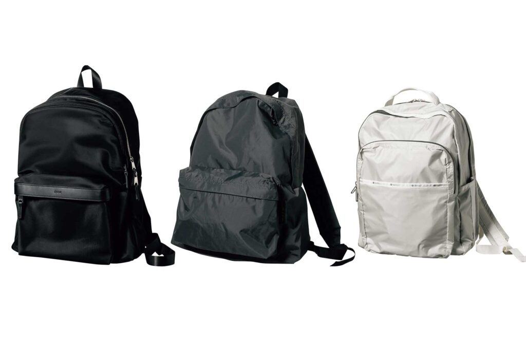 〈左から〉PCや小物を収納しやすい仕切り付き。某ドラマで人気女優が持ち、話題のブランド。バックパック〈H42.2×W31×D10.3㎝〉¥24,200(ロペエポール/ジュンカスタマーセンター)LAの学生が使っていたリュックにフレンチカラーを施したのがブランドの始まり。デイパック〈H40×W30×D12.5㎝〉¥26,180(エルベシャプリエ/エルベシャプリエ代官山)型崩れしにくく、ペンホルダーやガジェット類の収納にも便利なポケットも充実。バックパック〈H40×W30×D12㎝〉¥34,650(レスポートサック/レスポートサックジャパン)