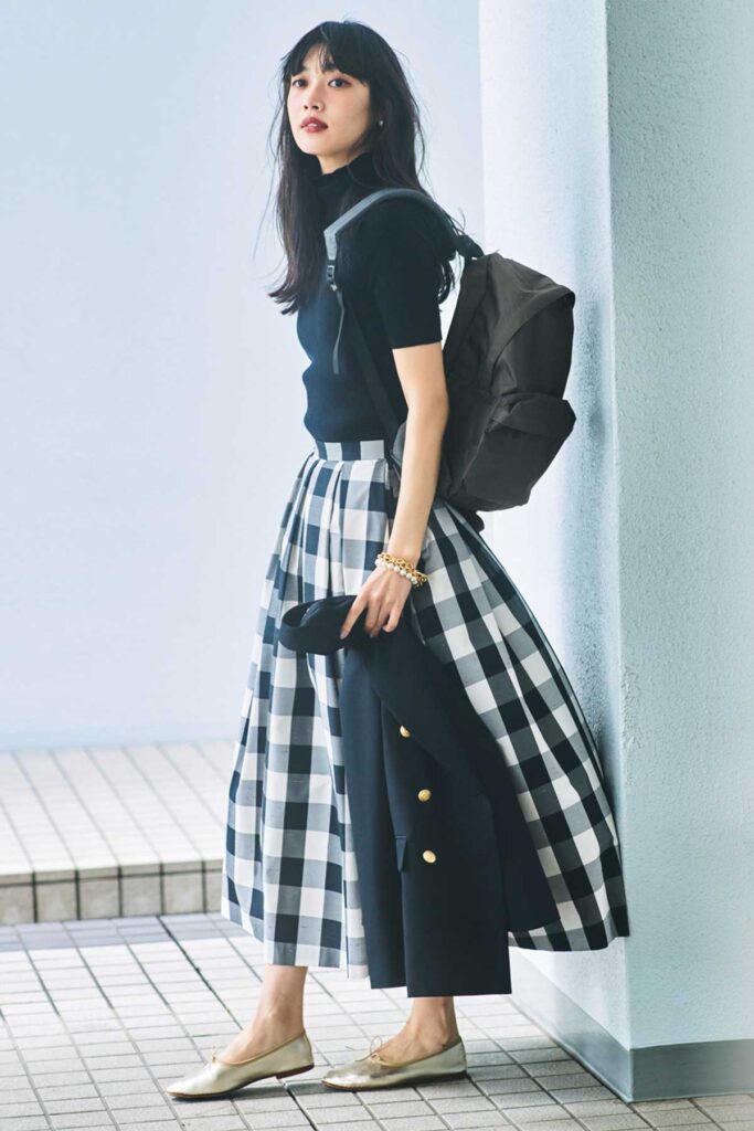 11.スカートスタイルに旬の抜け感をプラスする歴史あるひし形ロゴ