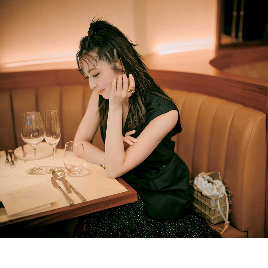 一番オシャレの気合が入る女友達と過ごすラグジュアリーなひとときは華やかディテールを盛り込んだオールブラックで決まり。黒の安心感に頼れば、トレンド服にも気負わず挑戦できる。