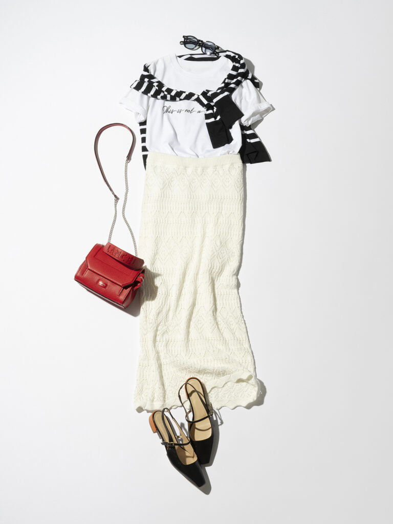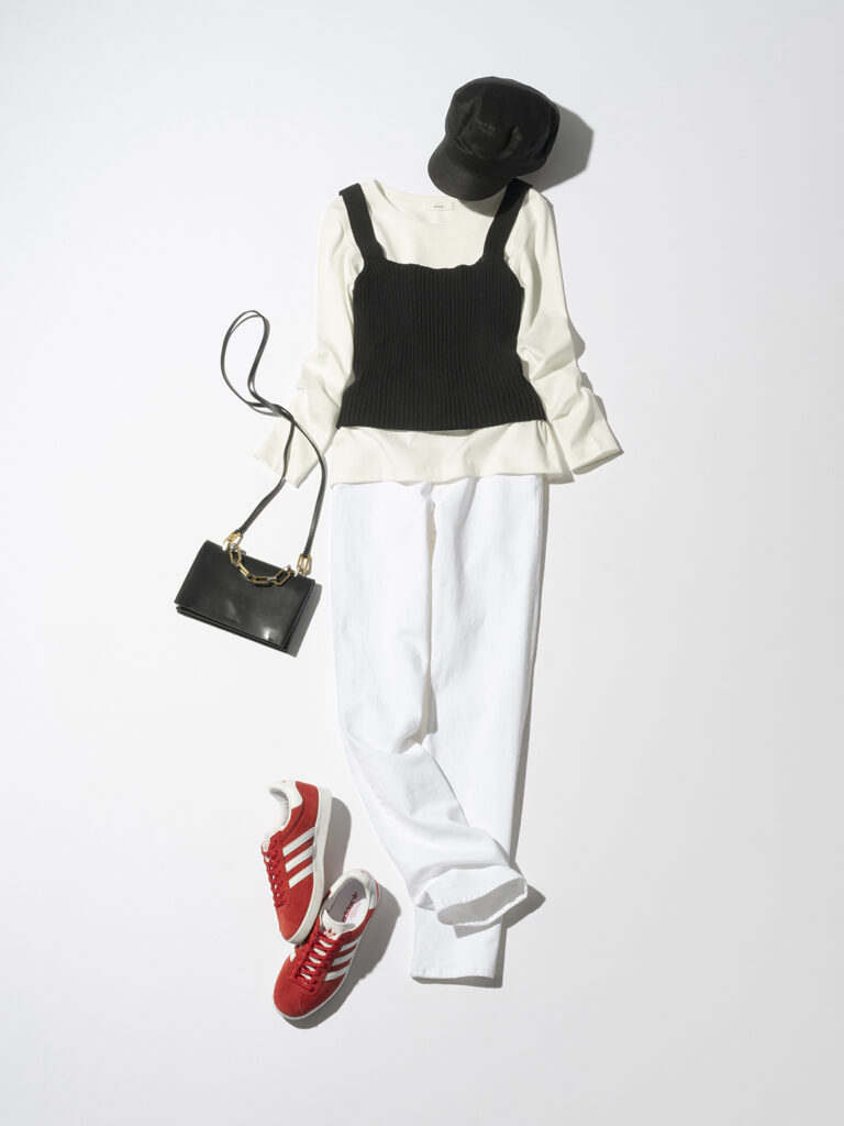白&黒&赤で作る、春の好印象コーデ