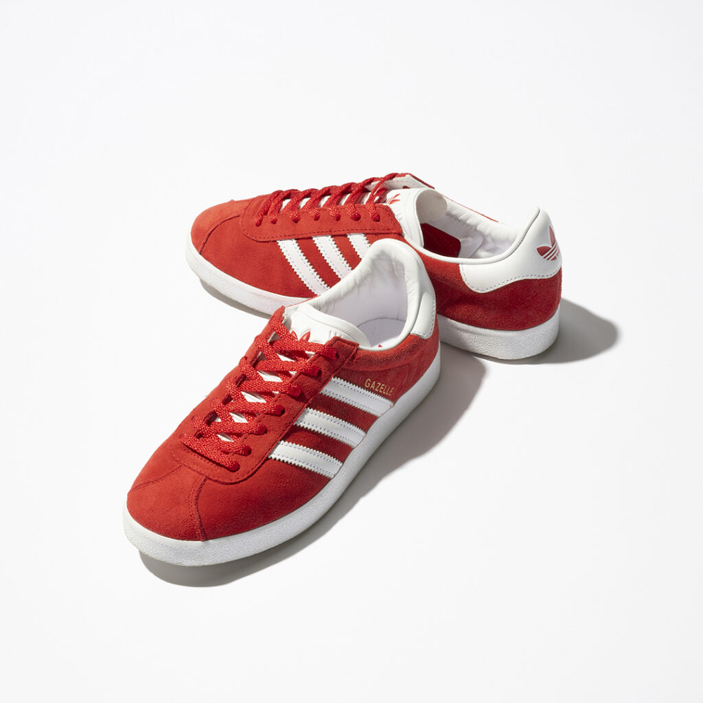 この春夏、注目を集めるガゼルは、クラシックなルックスとスエードのアッパーでキレイめに履けるから、オフィカジにも対応。鮮やかな赤は、モノトーンはもちろんブルーデニムにも好相性。スニーカー¥17,600(アディダス オリジナルス/アディダスお客様窓口)