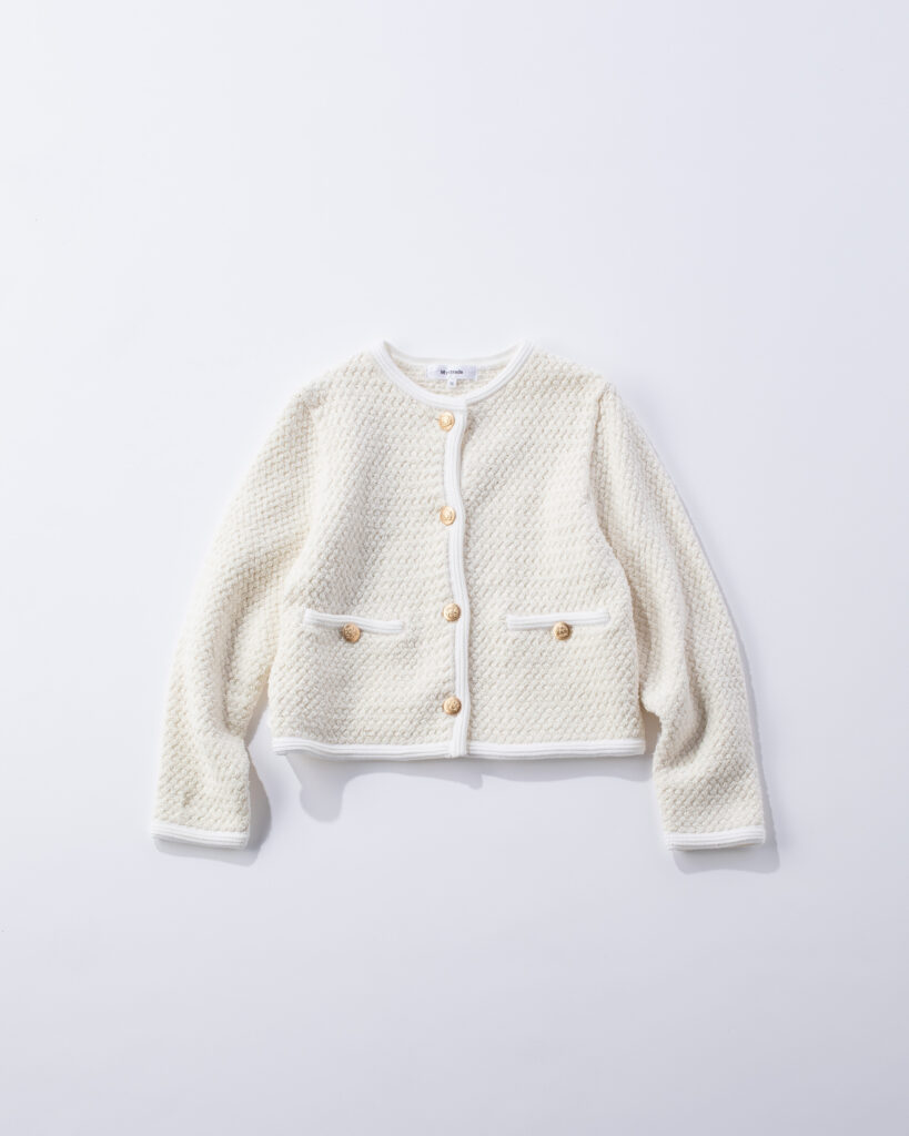 クラシカルな金ボタン付きカーデでパリジェンヌ風