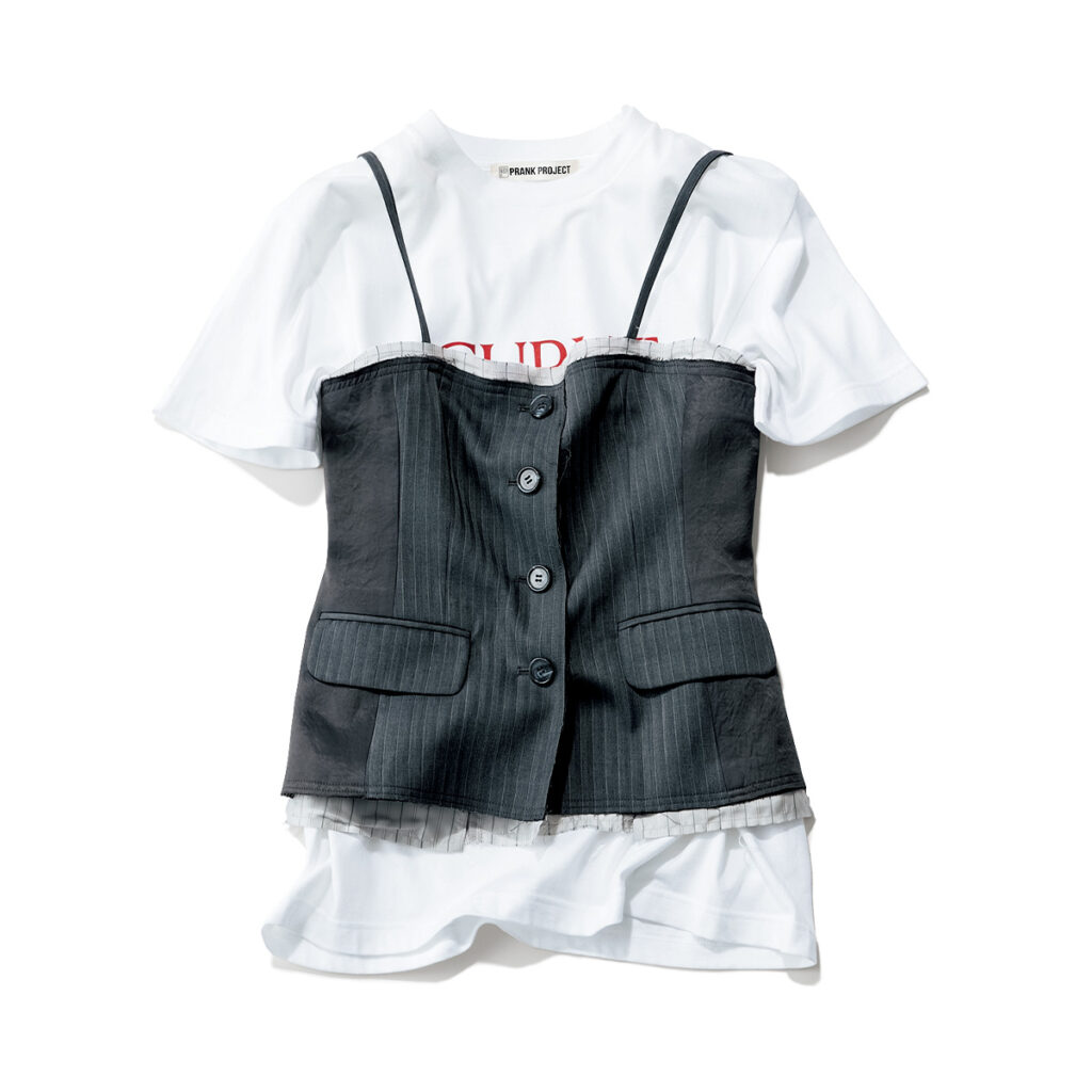 2023年/「衣装みたいなアイテムを探すときは必ず覗きます」ビスチェ¥24,200ロゴT¥9,900(ともにプランクプロジェクト/プランクプロジェクト 青山店)