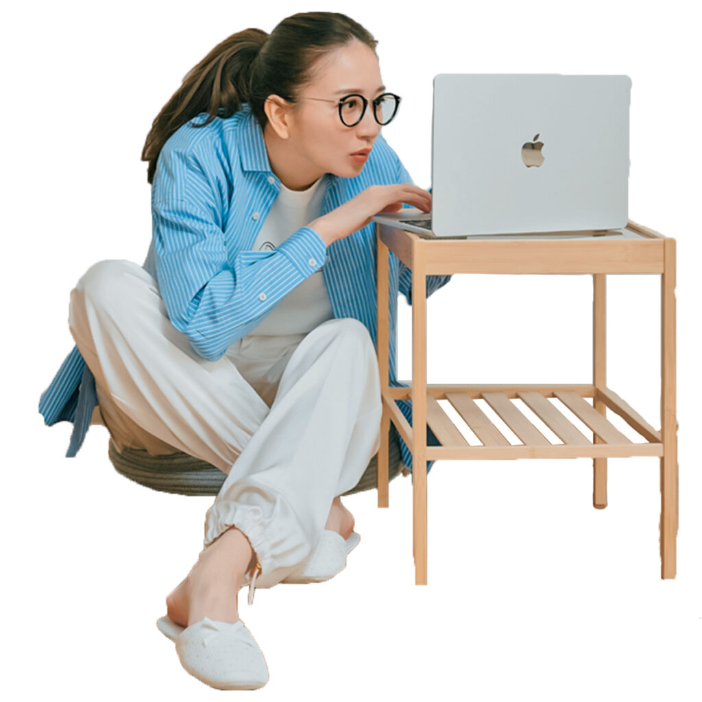 オーバーサイズシャツ着回し ロゴTシャツ¥10,450(THIRD MAGAZINE)パラシュートパンツ¥19,800(ジャスグリッティー/ジャスグリッティー プレスルーム)メガネ¥44,000(アイヴァン/アイヴァン 東京ギャラリー)スリッパ/スタイリスト私物