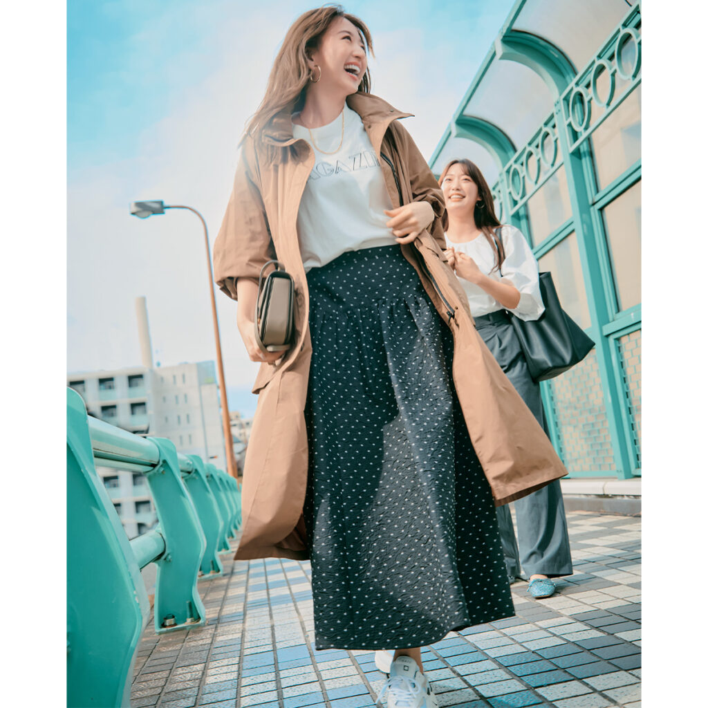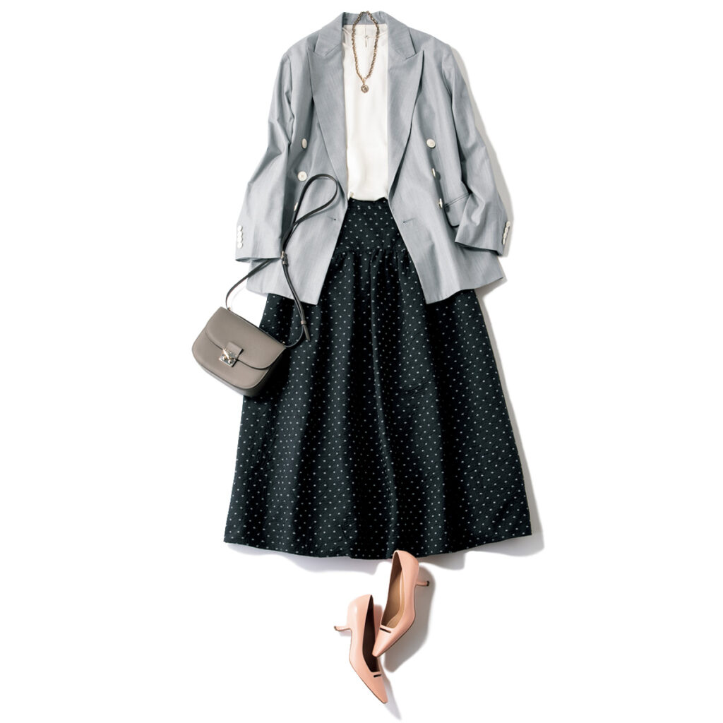 シンプルだけど今年らしくアップデート!今回は「構築的フレアスカート」の着回しコーデを紹介します。