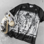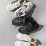佃弘樹は、「C-3PO」と「R2-D2」をモチーフに、SUPERSTAR XLGとTシャツを展開。アッパー全体を包み込むようにアートワークが施されたSUPERSTAR XLGは、 クリア素材のスリーストライプスを採用。クラシックなモデルに佃弘樹の大胆なグラフィックが融合し、スター・ウォーズの世界観をより引き立たせます。