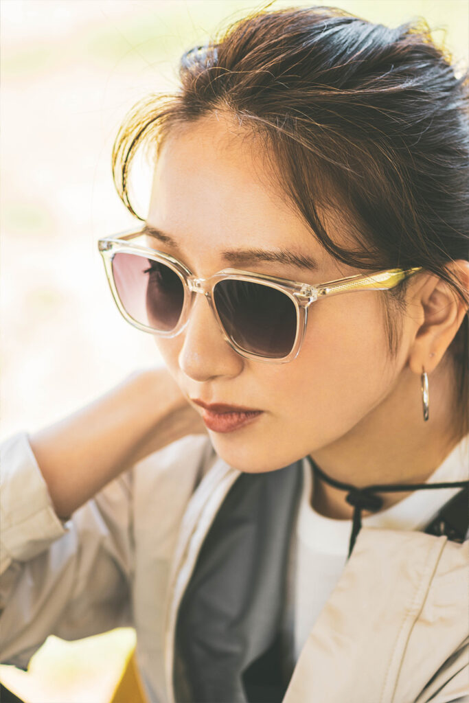 もうひとつ夏のデートにオススメしたいデザインが「MDJ-42」。こちらも薄づきのクリアレンズで目元が透けるデザイン。オーセンティックなボストンシェイプは、丸眼鏡のような気分で気負わずにコーディネートに取り入れられるのが自慢です。個性的すぎずクラシックなデザインだから、彼ウケも狙えそう。サングラス¥11,000(マッドジャーニー/眼鏡市場)