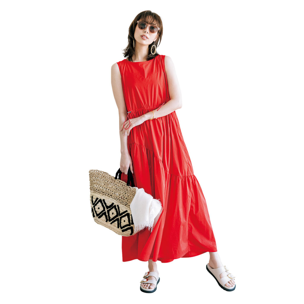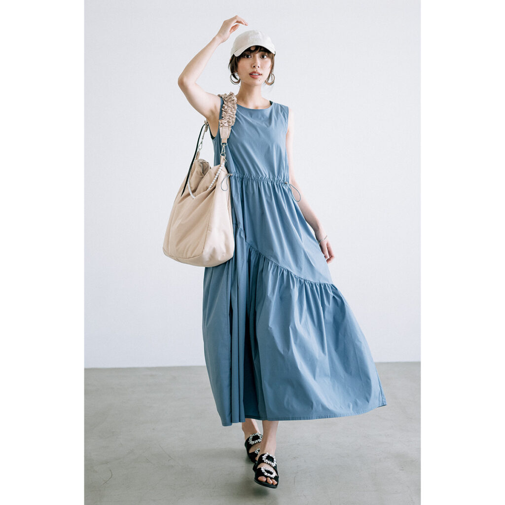 『〝ジム帰りにさっと着て、街でもサマになる〟というコンセプトのワンピースはパッと華やぐ夏色を別注。』