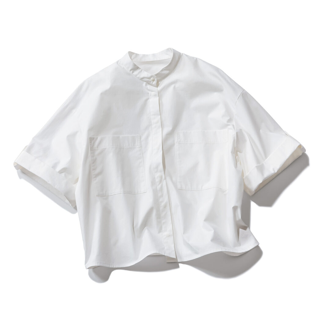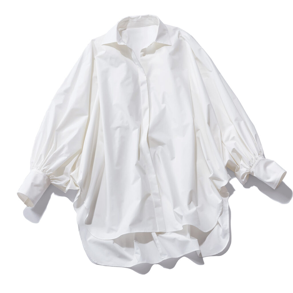 次はトレンドのデザインを取り入れた白シャツに注目。ちょっと攻めた一枚だって、白シャツだから安心。大人にちょうどいいバランスのまま着られるから毎日のオシャレに刺激が欲しい時にもぴったりです。