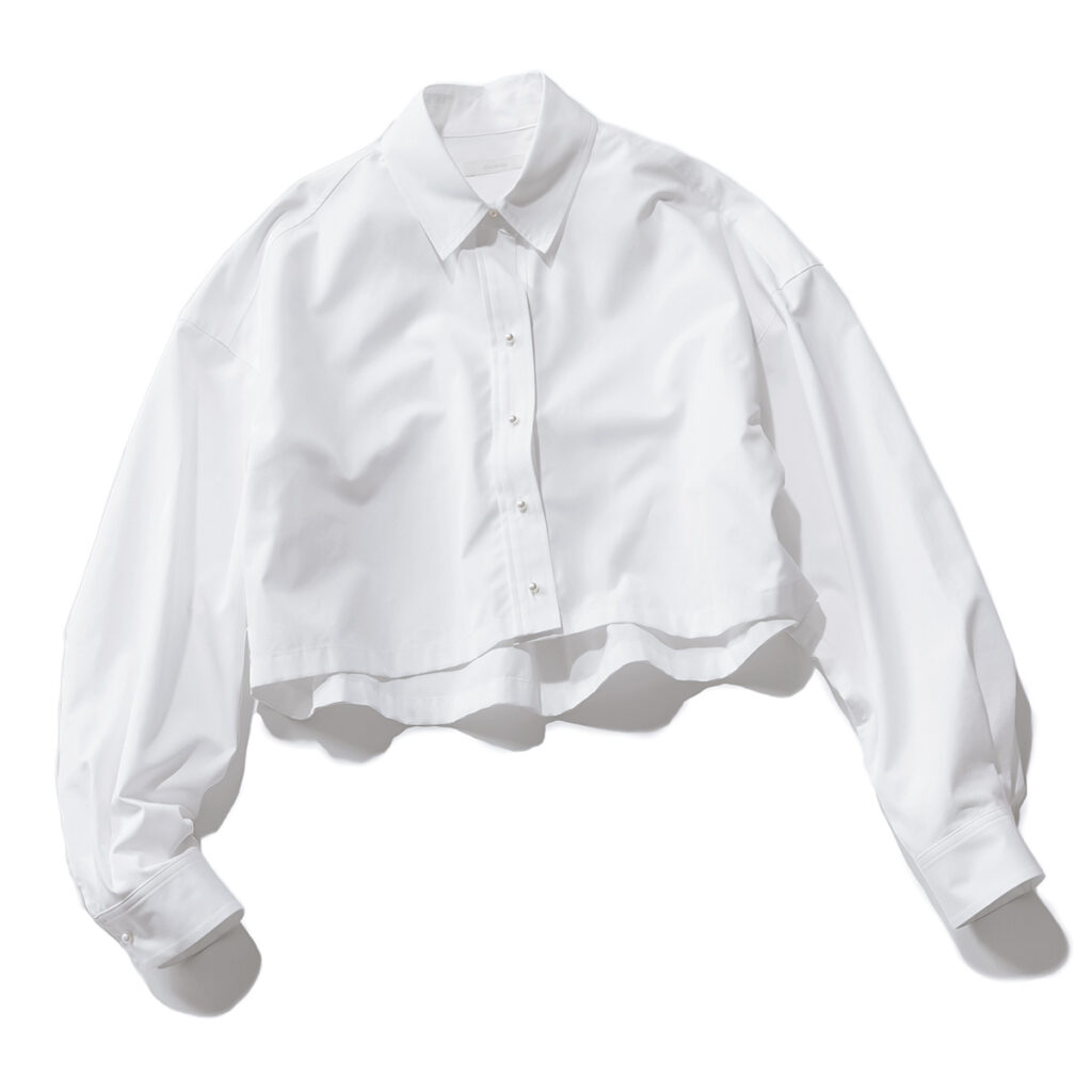 大人にもじわじわきている肌見せブーム。お腹がチラッと見えるショート丈も白シャツならすんなり取り入れやすい!いつもの装いを少しモードに変えてくれます。