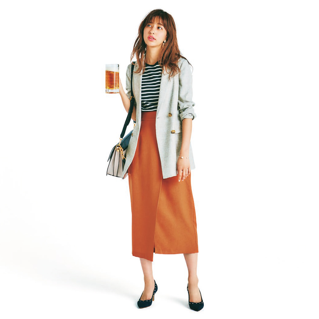 美人感を醸し出すタイトスカートはオレンジが断然今年っぽい。スカート¥12,000(ノーリーズ/ノーリーズ&グッドマン銀座店)