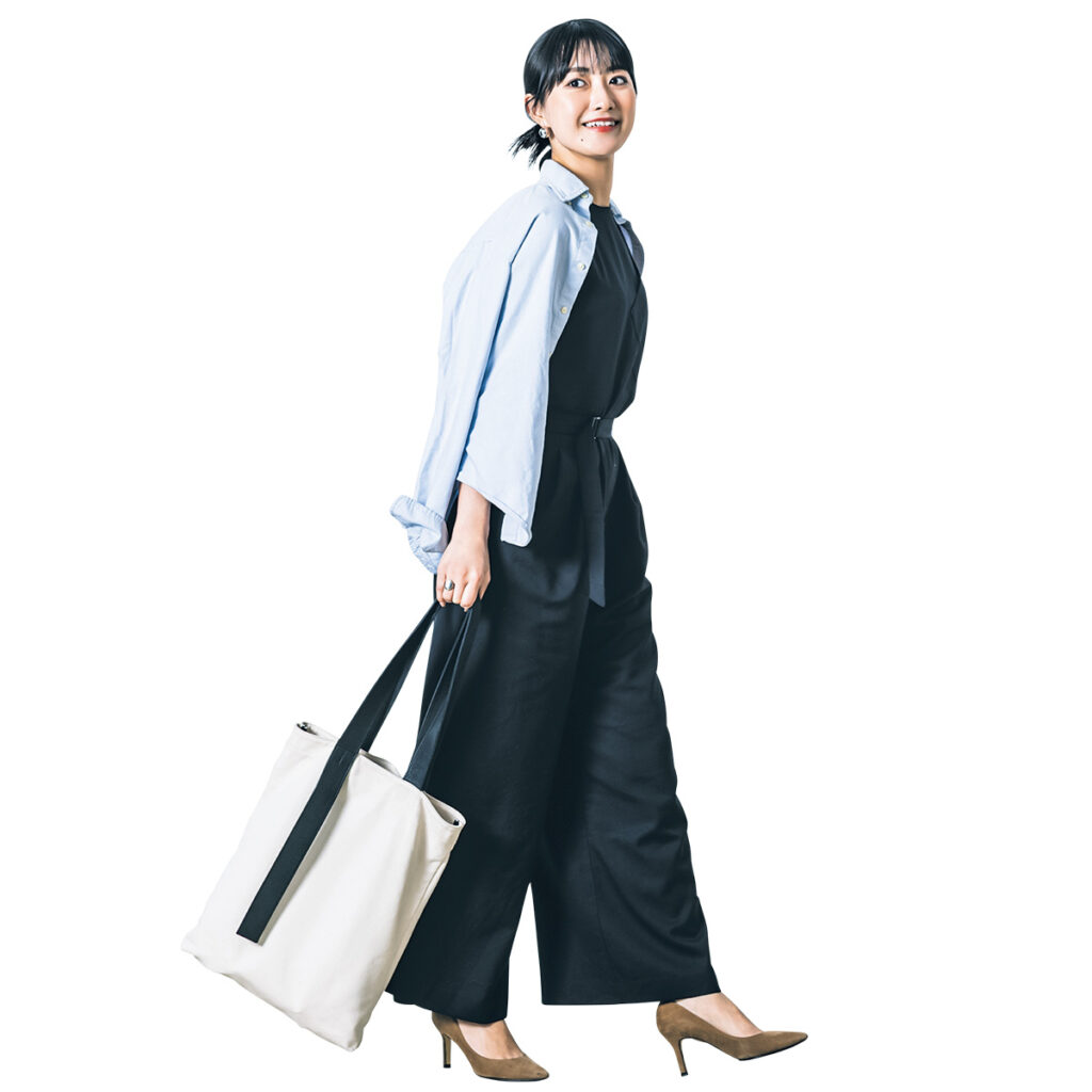 大好物のノースリオールインワンは、春のうちから早めに取り入れたい!サッと羽織れるブルーシャツに頼れば、季節感もオシャレ度もグッと高まります。
