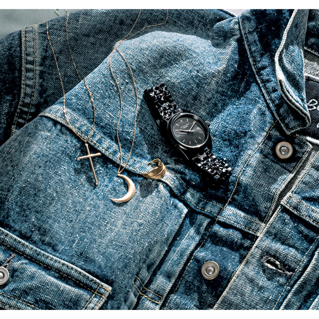 ブレスウォッチのフェイスやアームのディテールを引き出したり、ミックスアンドマッチを最大限楽しめるカラージュエリーとの組合せで、華やかさを盛り立てて。