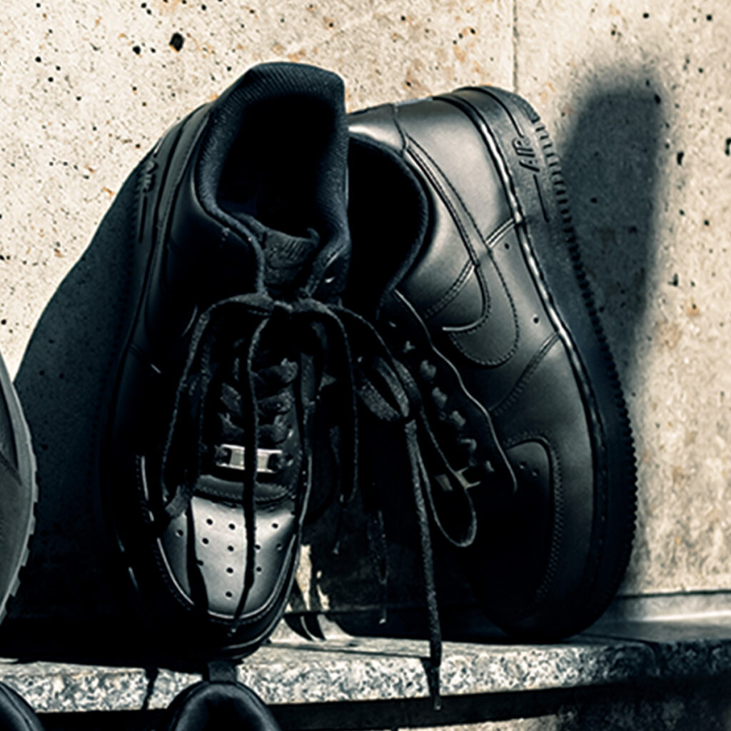 Features…適度に光沢のあるブラックレザーとクラシックなスタイルが、スポーティすぎない足元を約束。¥16,170(ナイキ スポーツウェア/NIKE カスタマーサービス)