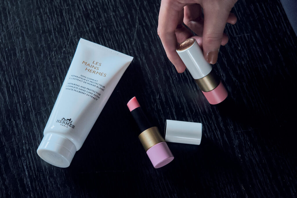 ギフトにも喜ばれるエルメスのビューティ。ささっと塗ることができるティンティッドリップバームは、その人の唇の自然な色合いを引き出します。ハンドケアクリームは98%が天然由来成分。なめらかなバーム状のテクスチャーと爽やかかつエレガントな香りで、働く手のケアも抜かりなく。右からローズ エルメス ローズ アレーヴル 30 ¥9,020、同ブリヤン 27 ¥9,020、レ マン エルメス クレーム レ マン 100㎖¥13,750(すべてエルメス/エルメスジャポン)