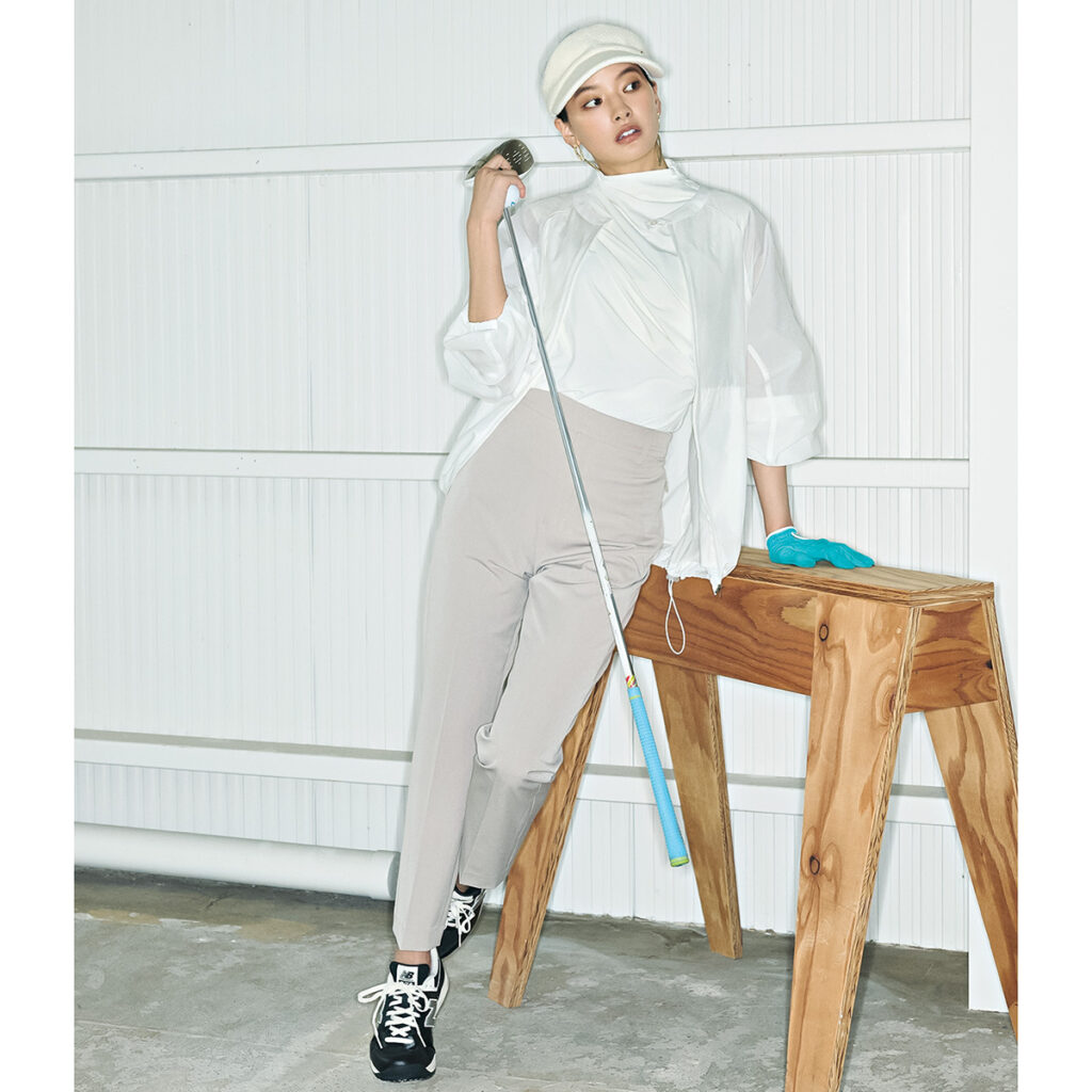 ゴルフ初心者さんは、普段のオシャレと同じテンションで楽しめるモノトーンスタイルがおすすめ!上下の組合せが自在で、デイリーシーンにも着回せるからコスパも◎