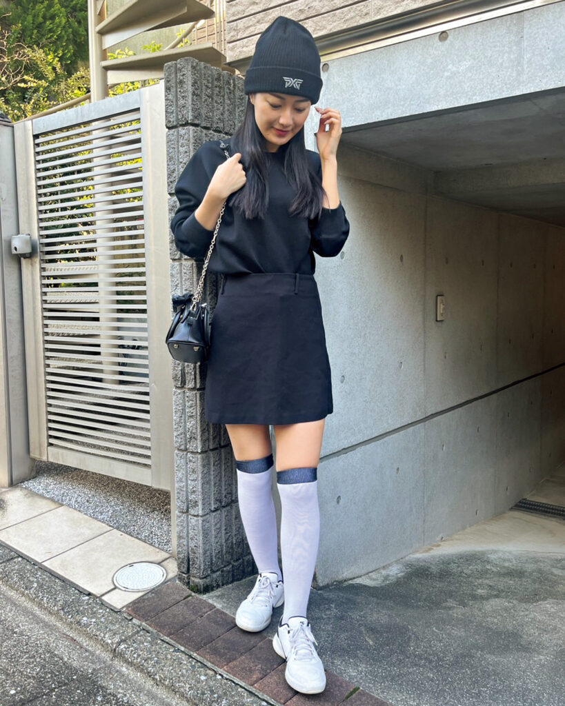 派手なウェアというよりも、私服の延長でゴルフウェアも着たい!と思い、モノトーンでまとめることが多いです。