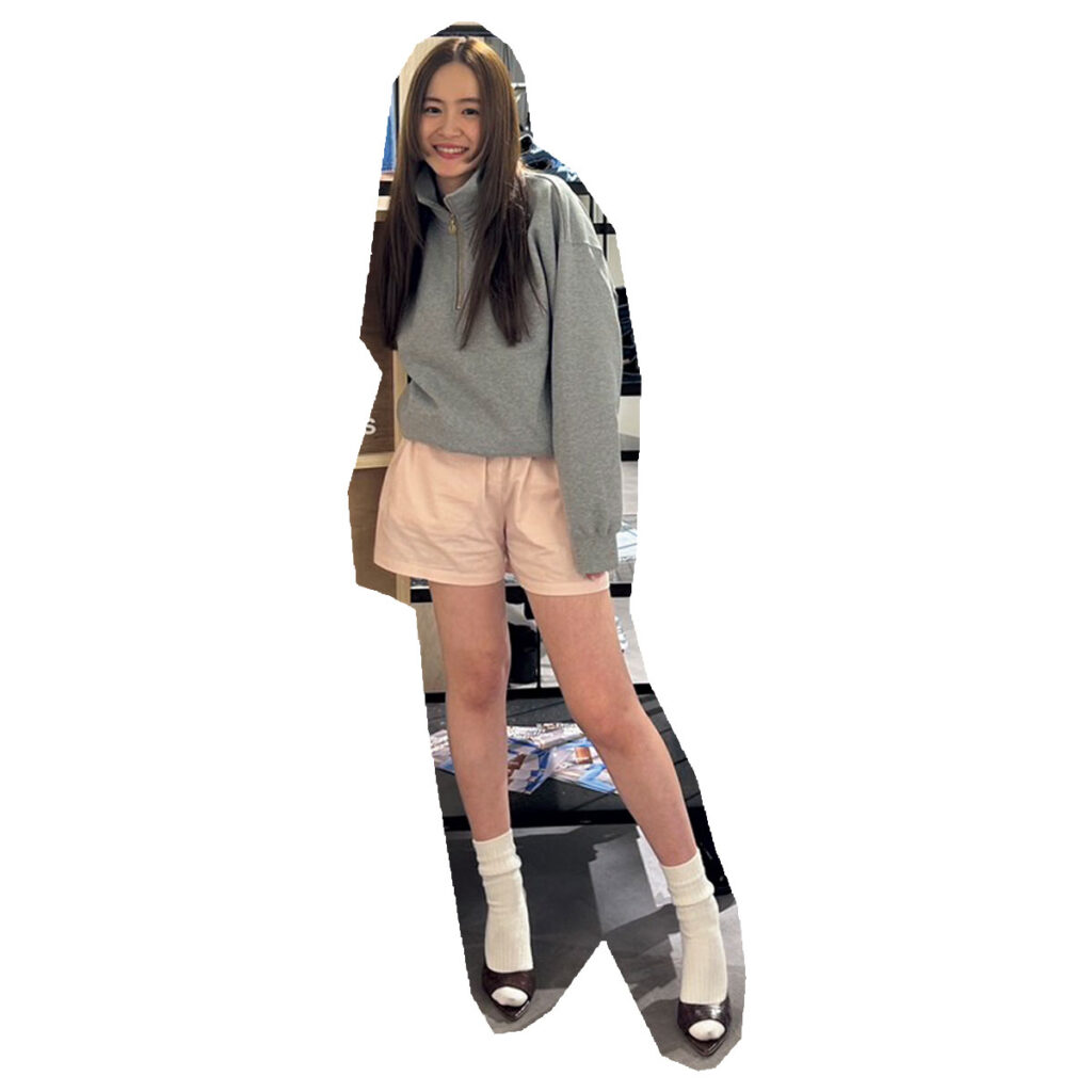 「重めスニーカーでカジュアル寄せ」でミニの女っぽさを軽減。