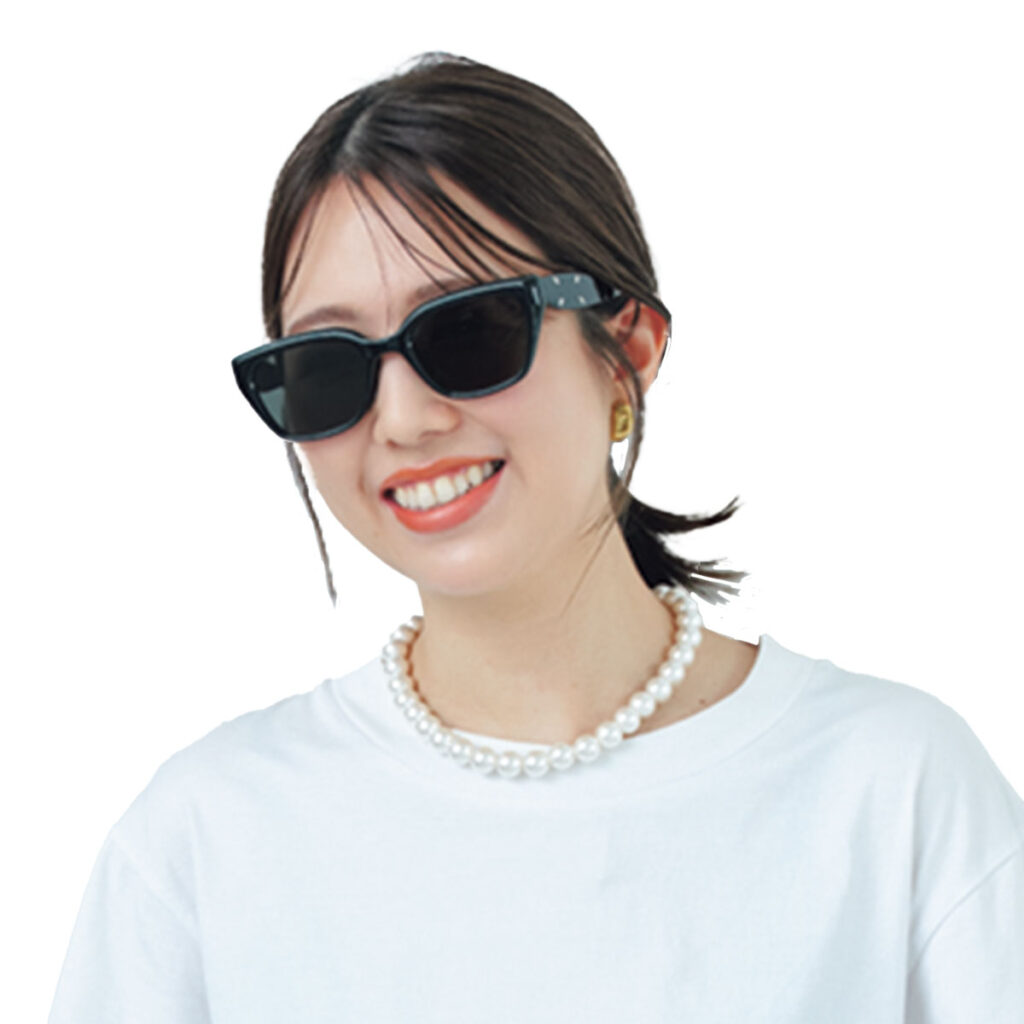 寺松さん(以下、寺):たしかに、今年に入ってからよくかけるようになったかも。雑誌やSNSを見るとコーデに取り入れている人が多くて、デイリーに取り入れたいと思って!今年、新しいメガネとサングラスを買いました♡(1)この夏、たくさん使いたいです。