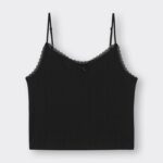 カジュアルなリブ生地に、レースとサテンリボンのデザインが効いたキャミソール。クロップド丈でヘルシーな肌見せコーデにも使いやすい! コットンブレンドの柔らかい肌触りが病みつきに。