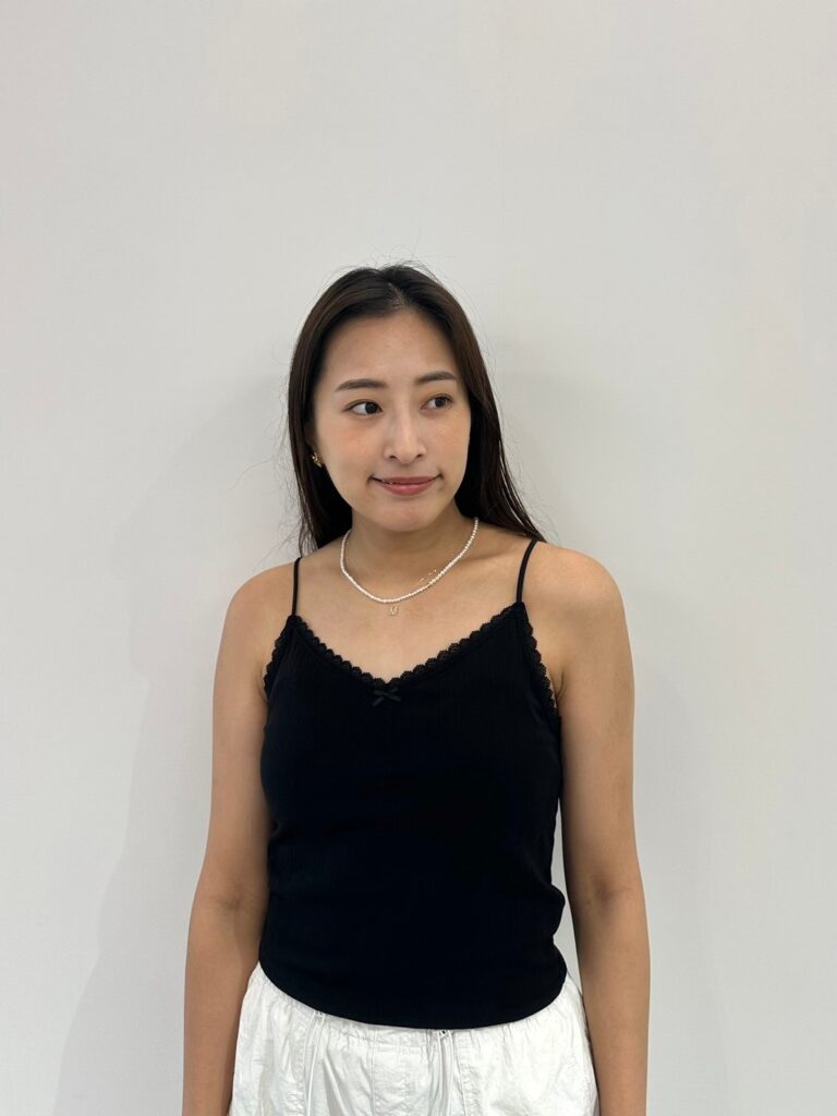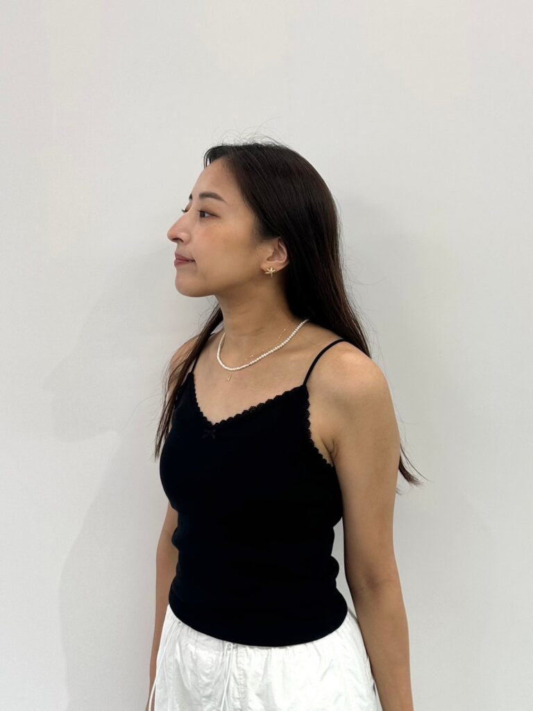 思わず手に取りたくなる、女度が上がるレース&リボンのデザイン。胸元・脇下が空きすぎておらず、ソフトなフィット感があるので一枚でも安心です。見えてもオシャレな、絶妙な細さのストラップもポイント。