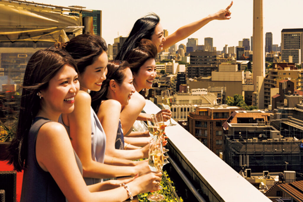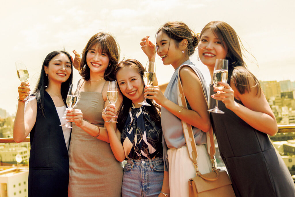 ルーフトップで乾杯するシャンパンは、頑張ってる自分たちへのご褒美!カジュアル服もいいけれど「わざわざするオシャレ」が楽しい日だってあるんです!