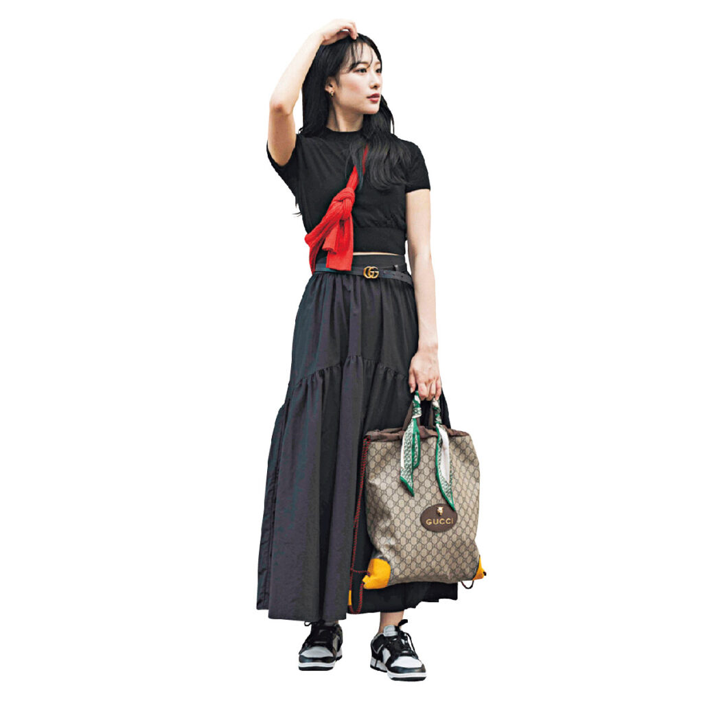 TOPS_alexander wang/CARDIGAN_UNIQLO/BELT_GUCCI/SKIRT_ZARA/SHOES_NIKE