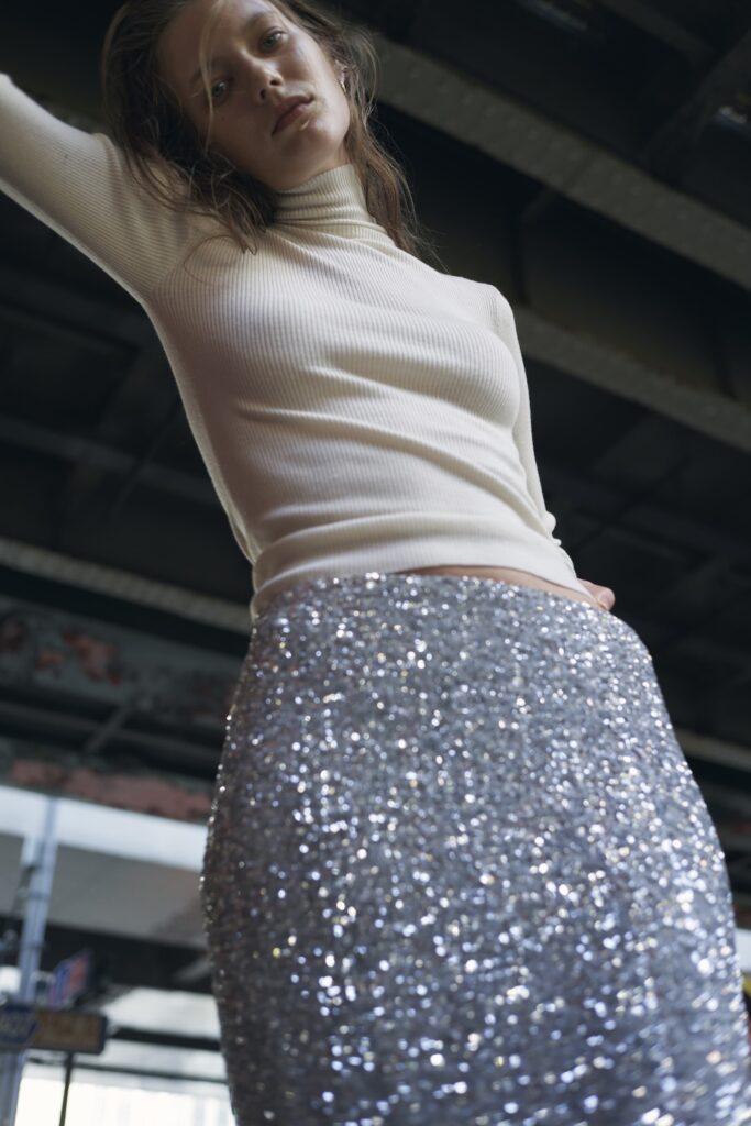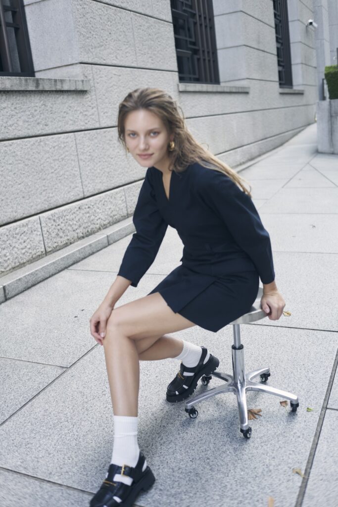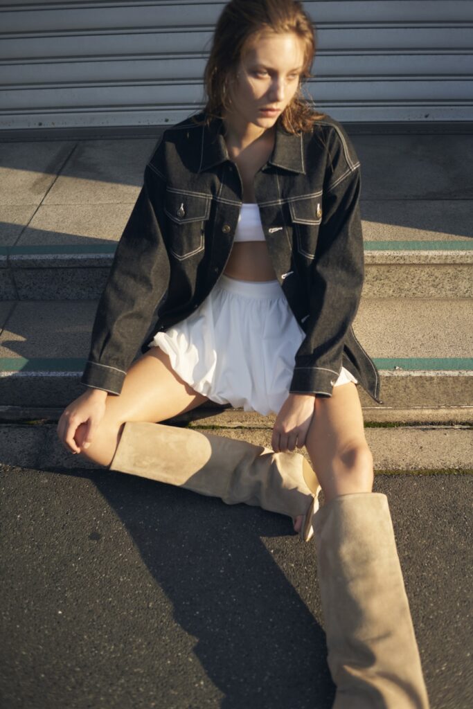 バレエコアのムードが漂うバルーンスカートやグリッターを使用したタイトスカートに加え、ブランド初となるチェスターコートも登場! さらに今回初めてニットレースを使用したハイソックスや、スポーティーさをプラス出来るボストンバッグなどの小物もラインナップしています。