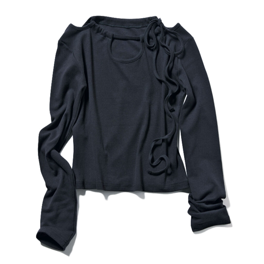 ディテールに特徴のある難易度が高そうな服でも、安心安全の黒を選べばハズれなし。どんな人にも寄り添ってくれる私たちのお守りカラーなら、普段のコーデにも取り入れやすい!