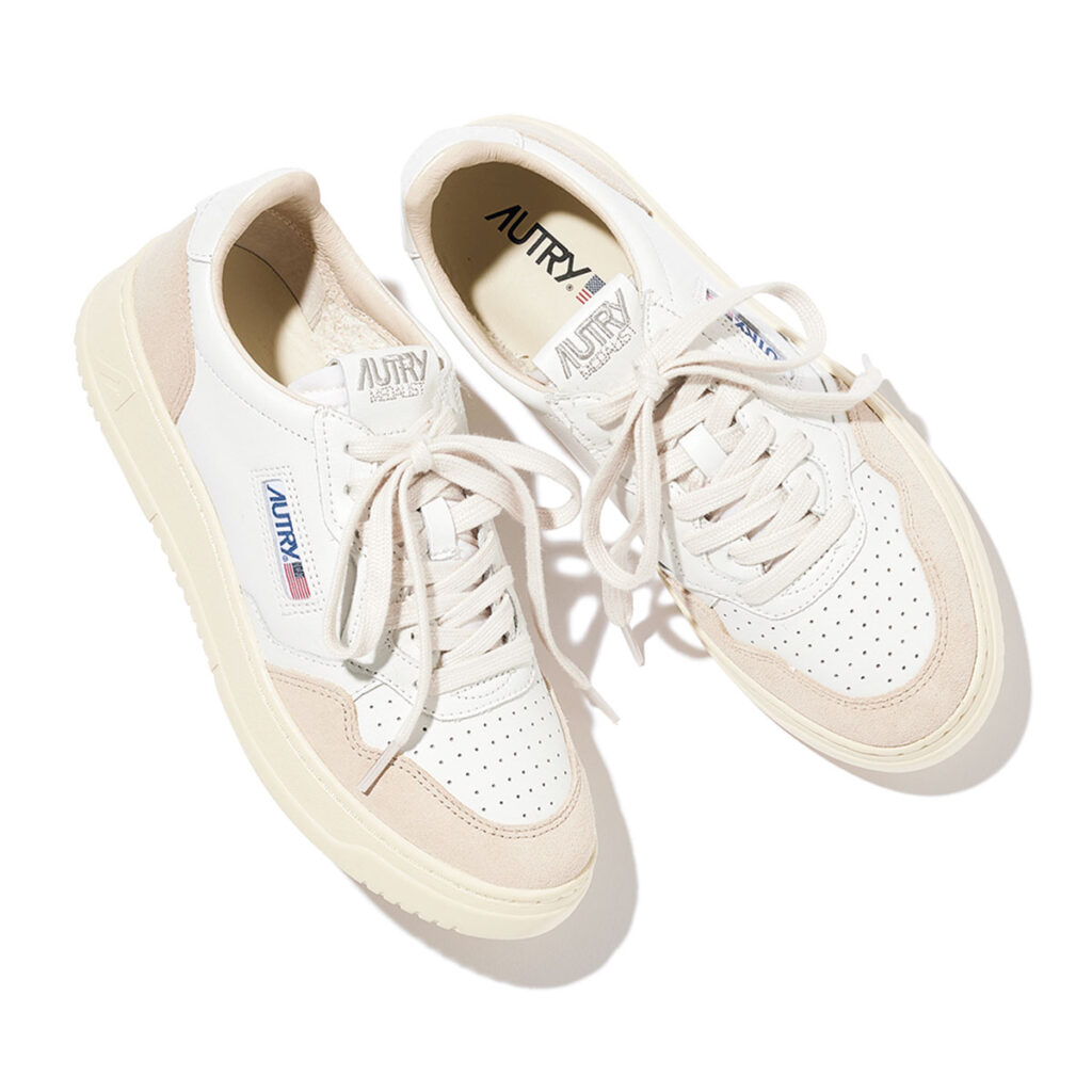 コンサバ派からも支持の熱い「AUTRY」、馴染みのいい白×ベージュが通勤に使いやすい!ベルト¥39,600(RH ヴィンテージ/RHC ロンハーマン)※RHC限定靴¥34,100(オートリー/トヨダトレーディング プレスルーム)Tシャツ¥12,100(カオス/カオス丸の内)デニムシャツ¥37,400(アッパー ハイツ/スピック&スパン ルミネ有楽町店)パンツ¥32,500(シーニュ)バッグ¥44,000(ラシット/ラシット 西銀座店)ピアス¥5,280(burself)ネックレス¥33,000(アルティーダ ウード)