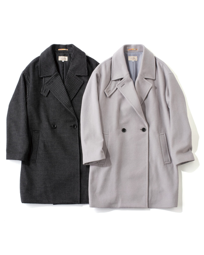 肩周りはドロップショルダーだから、ジャケットの上から羽織っても窮屈感ナシというのが最高にうれしい。優しげに見せるグレージュはスーツスタイルに合わせるのにぴったり。タブ付きでスタンドカラーにも表情を変えて楽しめて、さらに起毛ポケットで寒い日も手元暖か♡ コート¥25,300 ※10月上旬発売予定(ともにオリヒカ/オリヒカMARK ISみなとみらい店)