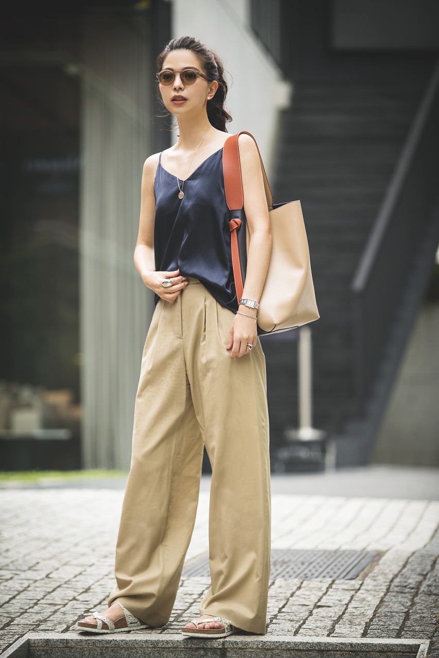 スポサン×ワイドパンツは、エレガントに仕上げるのがコツ