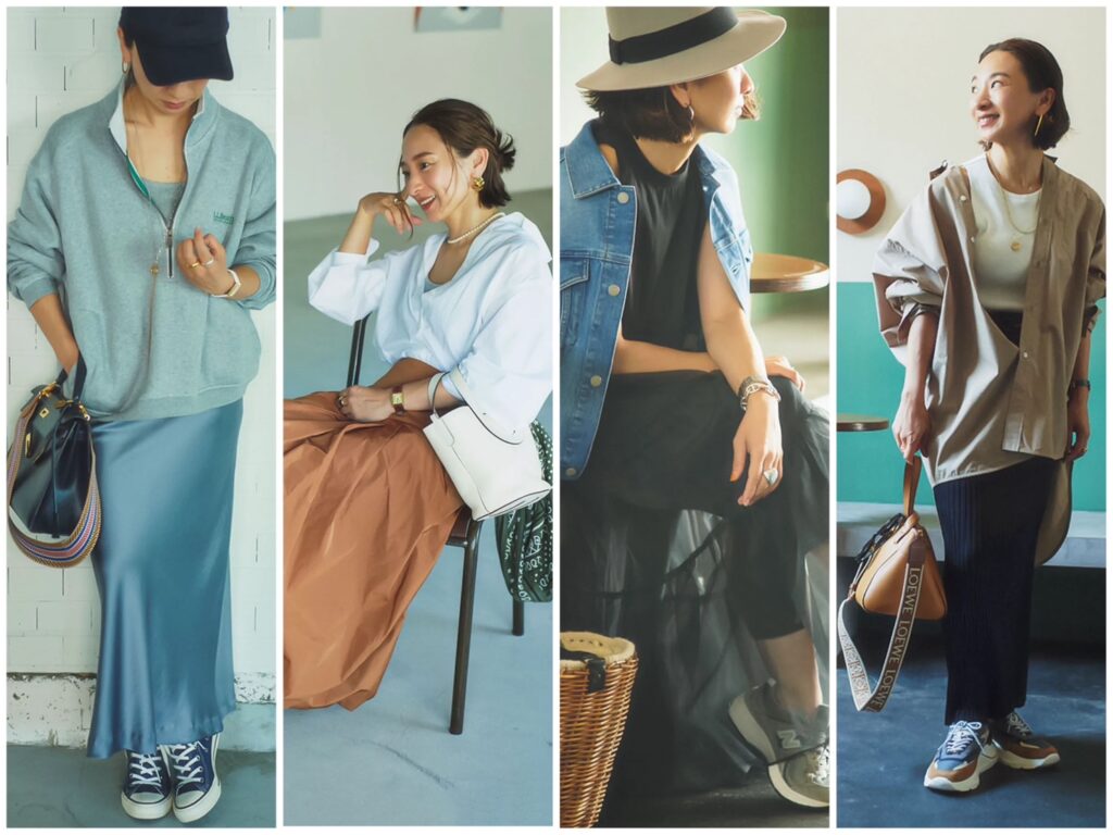 大人のリッチ感のあるかわいさや女っぽさが得意なスタイリスト・乾千恵さん。普段からスカートコーデが多い乾さんに、今っぽくてコンサバさんも使いやすい、おすすめスニーカーを私物から紹介してもらいました。