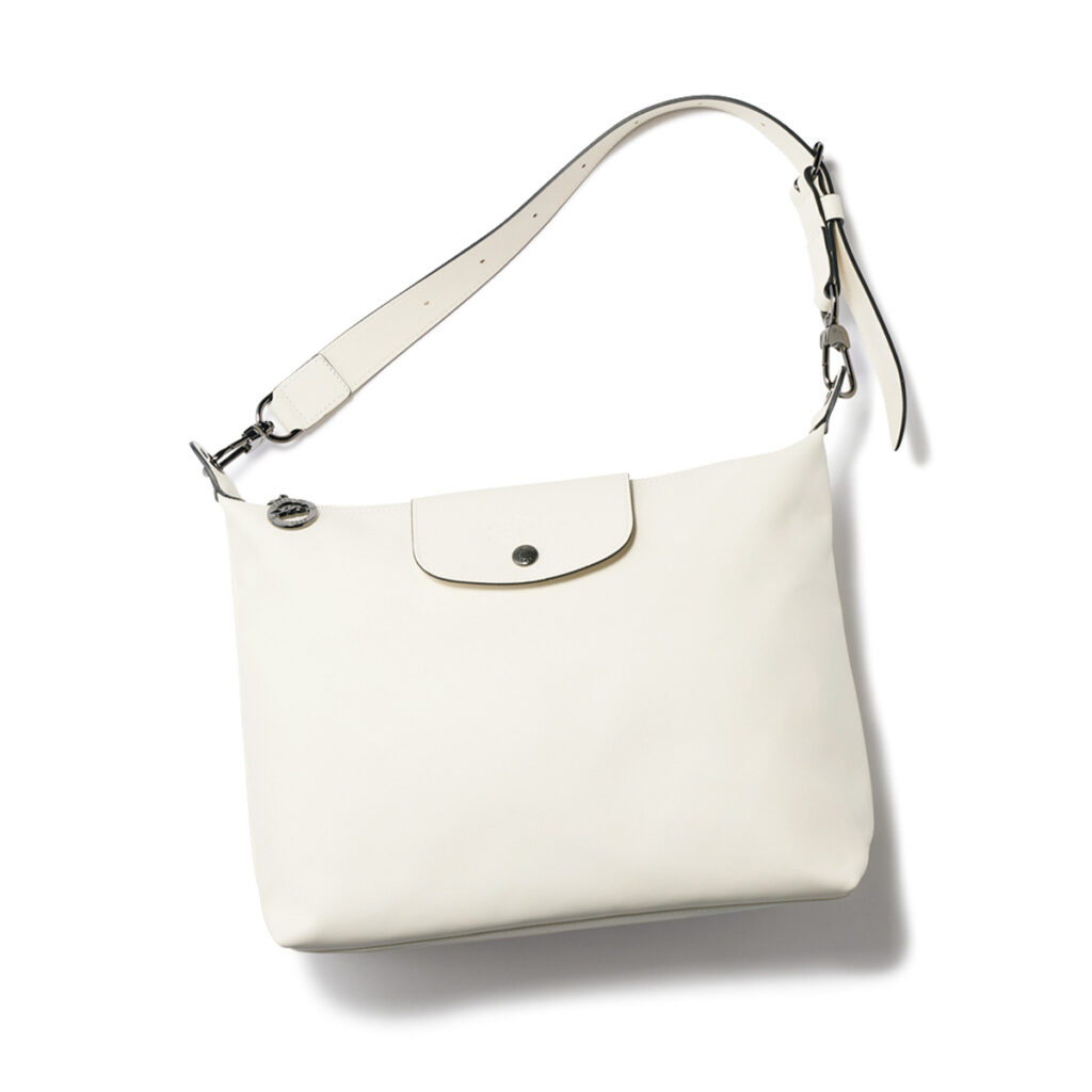 デートの予定がある日は、バッグもジャケットもワンピースも淡いトーンでまとめて優しげな雰囲気に。レザーだからこその凜とした佇まいのバッグはまろやかなカラーをセレクトすることできちんと感もたおやかさも。ショルダーバッグM〈ル プリアージュ® エクストラ/H25×W31.5×D11㎝〉¥96,800(ロンシャン/ロンシャン・ジャパン)ワンピース¥37,400(セテンス)ジャケット¥79,200(ギャルリー・ヴィー/ギャルリー・ヴィー 丸の内店)ピアス¥7,370(ピルグリム/ZUTTOHOLIC)