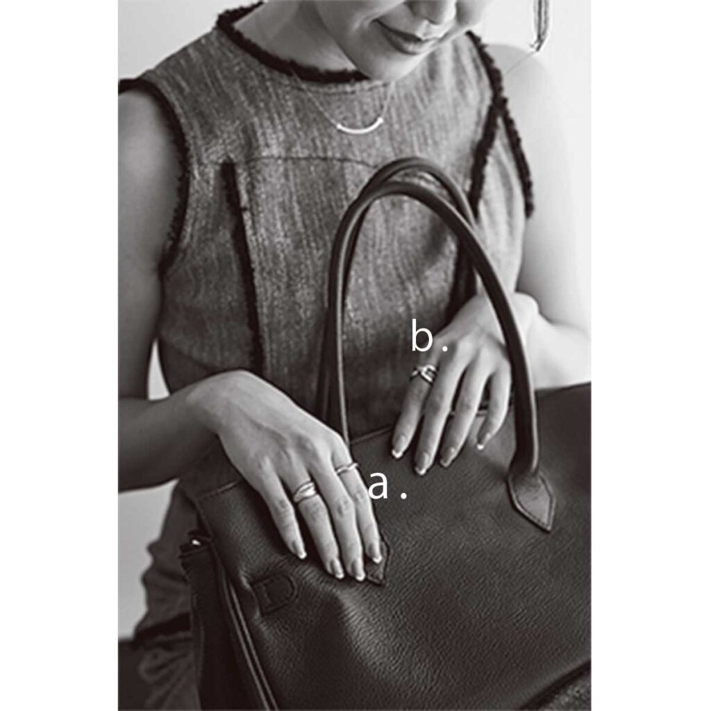 撮影現場にて、CLASSY.LEADERS内でこの名品リングのカブリ率がNo.1だったことから生まれたこの企画。クラシカルでいて、今っぽい。そんな両極な魅力を持つ「トリニティ」の定番レイヤードを教えてもらいました。