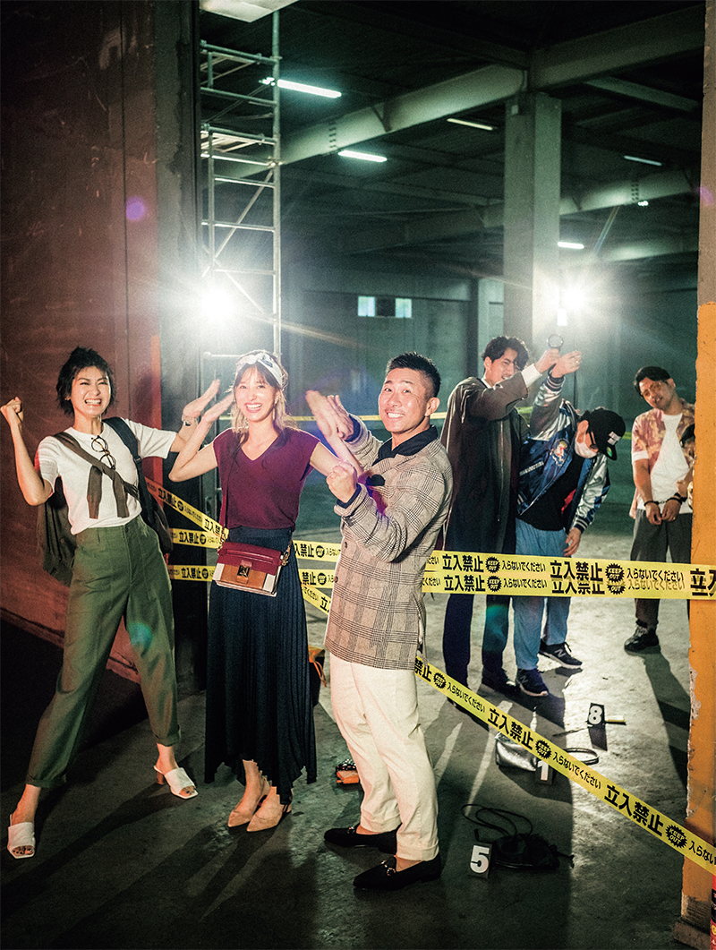 【前園さん】ジャケット¥95,000(サンタニエッロ/バインド ピーアール)パンツ¥24,000(ジェルマーノ/ビームス 六本木ヒルズ)【犯人・左】スカジャン¥12,960(スカジャン専門店 大熊商会)【犯人右】Tシャツ¥7,500(グッドオン)アロハシャツ¥12,800〈クリティカル スライド〉メガネ¥26,000〈エポキ〉(ともにポートオブコール 表参道)その他/スタイリスト私物