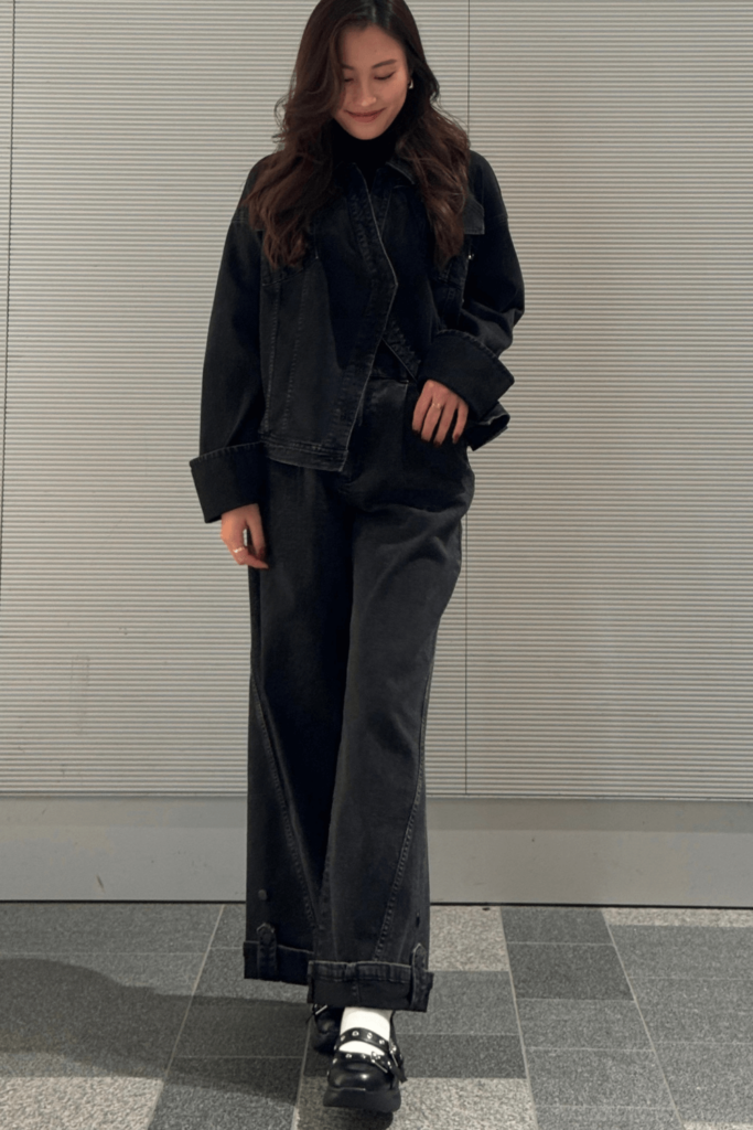 ななめにデザインされたチェストポケットが特徴的なデニムジャケット。ボタンを開けた状態でもバランスよく着こなせるデザインなので、コーデを選ばずマルチに取り入れられます。袖口はターンバックさせたカフスがポイント。ストレッチ素材で動きやすく、同素材のデニムパンツとのセットアップも可愛い!