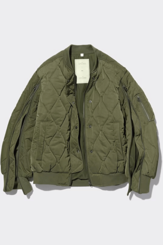 袖のファスナーが特徴のキルティングブルゾン。袖ファスナーを開けて着用するとケープ風スタイルになり、インナーを見せたコーディネートが楽しめるデザインになっています。カラーのトップスを取り入れたら、一気にトレンド感のあるレイヤードコーデが完成!!