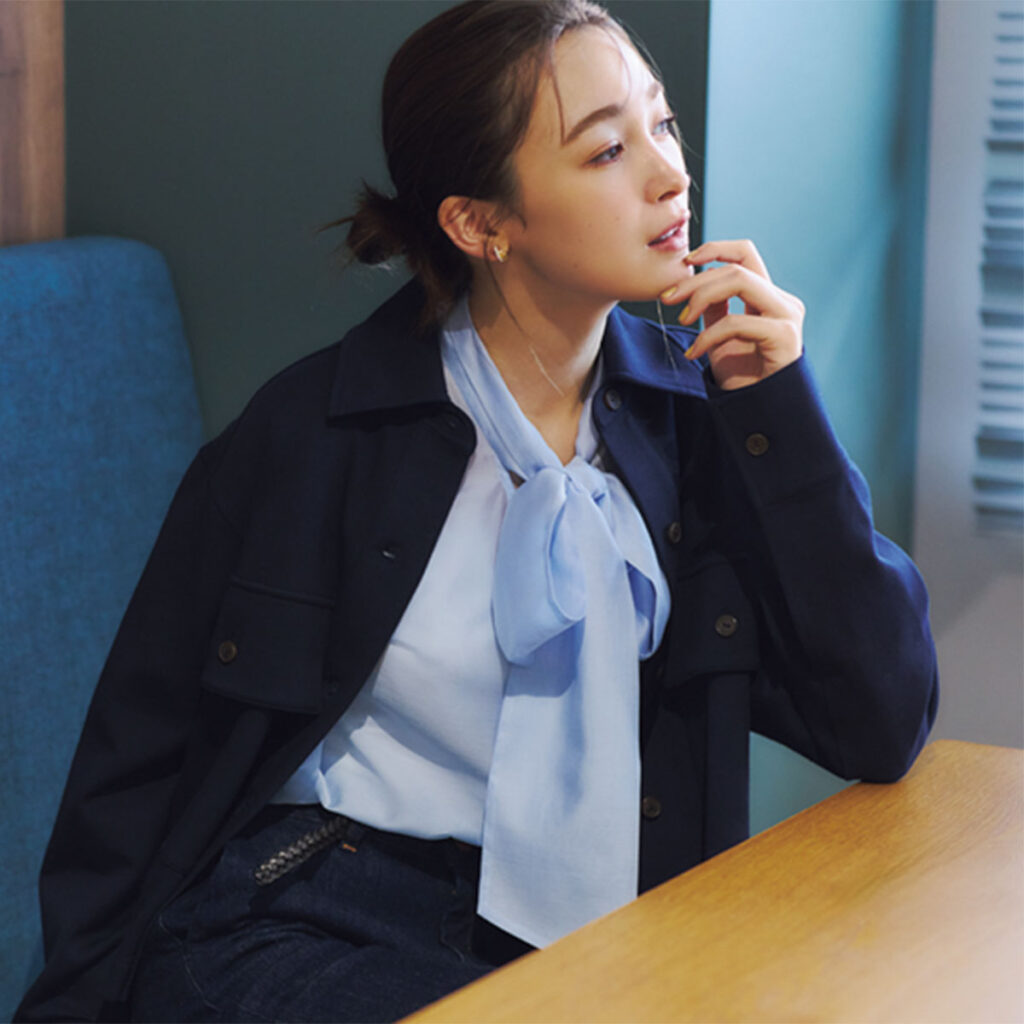 ステンカラーJKならボウタイブラウスも甘くなりすぎない