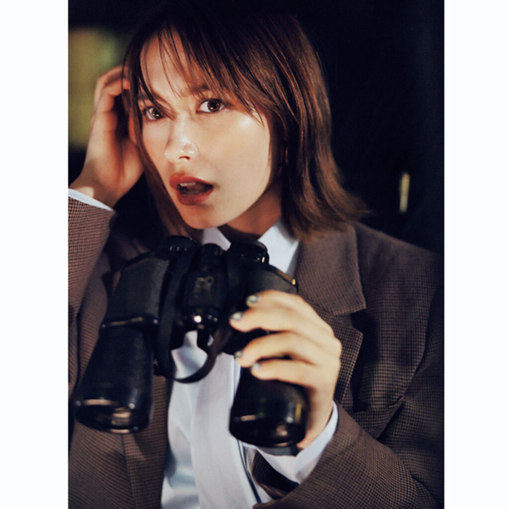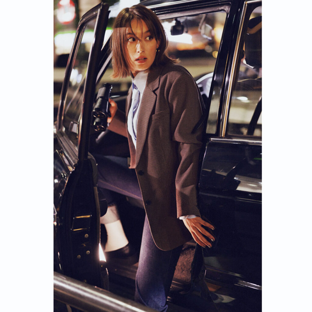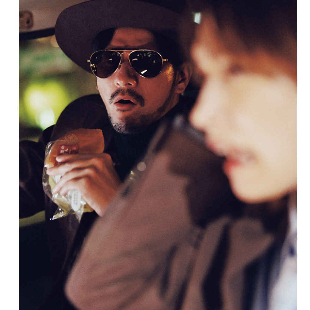 3カ月の研修を終えていざ、張り込みの現場へ。新人教育についてくれた先輩は、絵にかいたような渋くてかっこいい大ベテラン!私も先輩みたいにさらりと牛乳片手にあんぱんをほおばってみたいな…なんて浮かれていたら対象者を見失っちゃいそうに(汗)。ローファー¥9,350(ラルート/アバハウスインターナショナル オンラインストア)ピアス¥110,000(モニス/フォーティーン ショールーム)[先輩探偵]ジャケット¥59,400パンツ¥39,600(ともに5351プール・オム/アバハウス 池袋パルコ店)ニット¥20,900(デザインワークス/デザインワークス ドゥ・コート六本木ヒルズ店)サングラス¥53,900(アストロ/アイヴァン 東京ギャラリー)帽子¥16,940(CA4LA/CA4LAプレスルーム)
