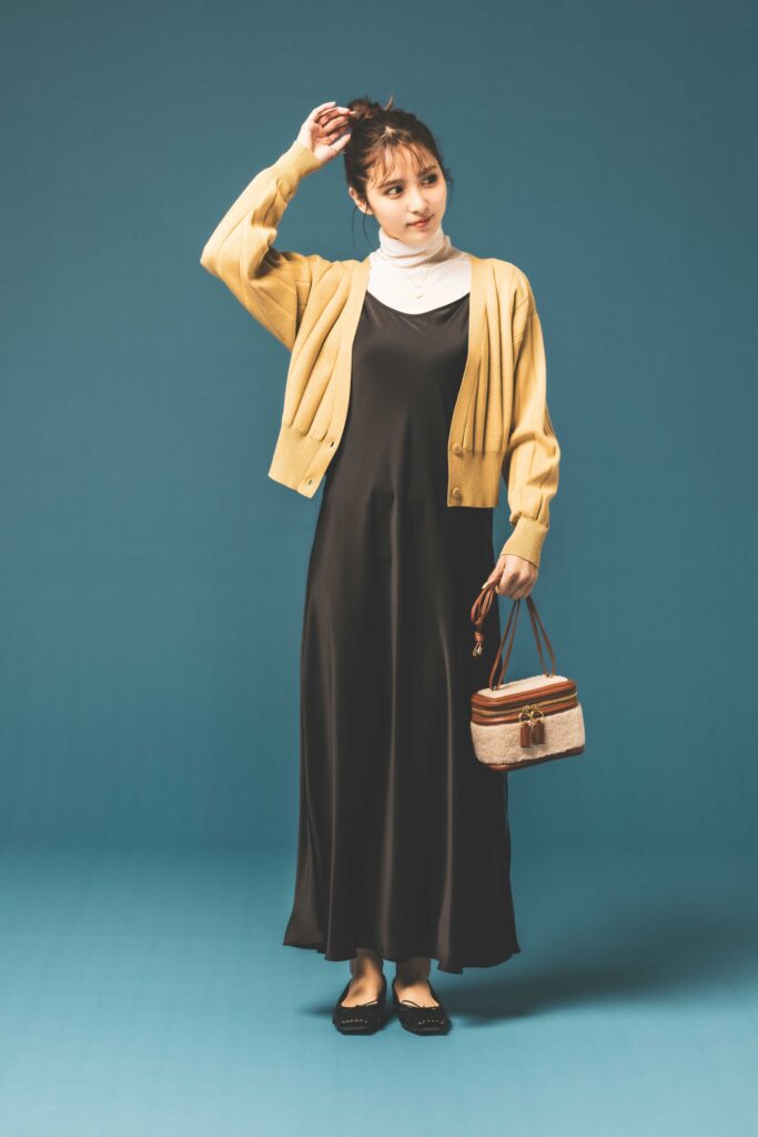 [春先コーデ]丈短シルエットだからワンピに重ねてもスタイリッシュな印象