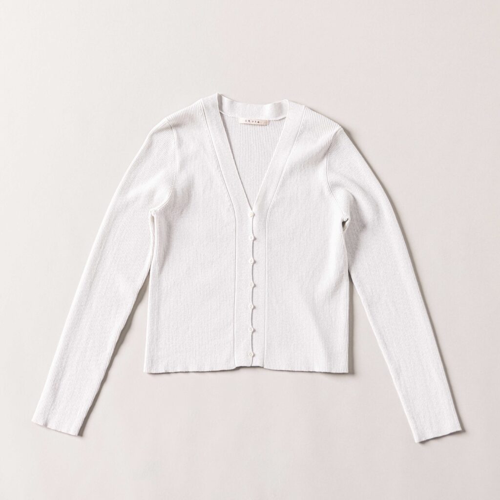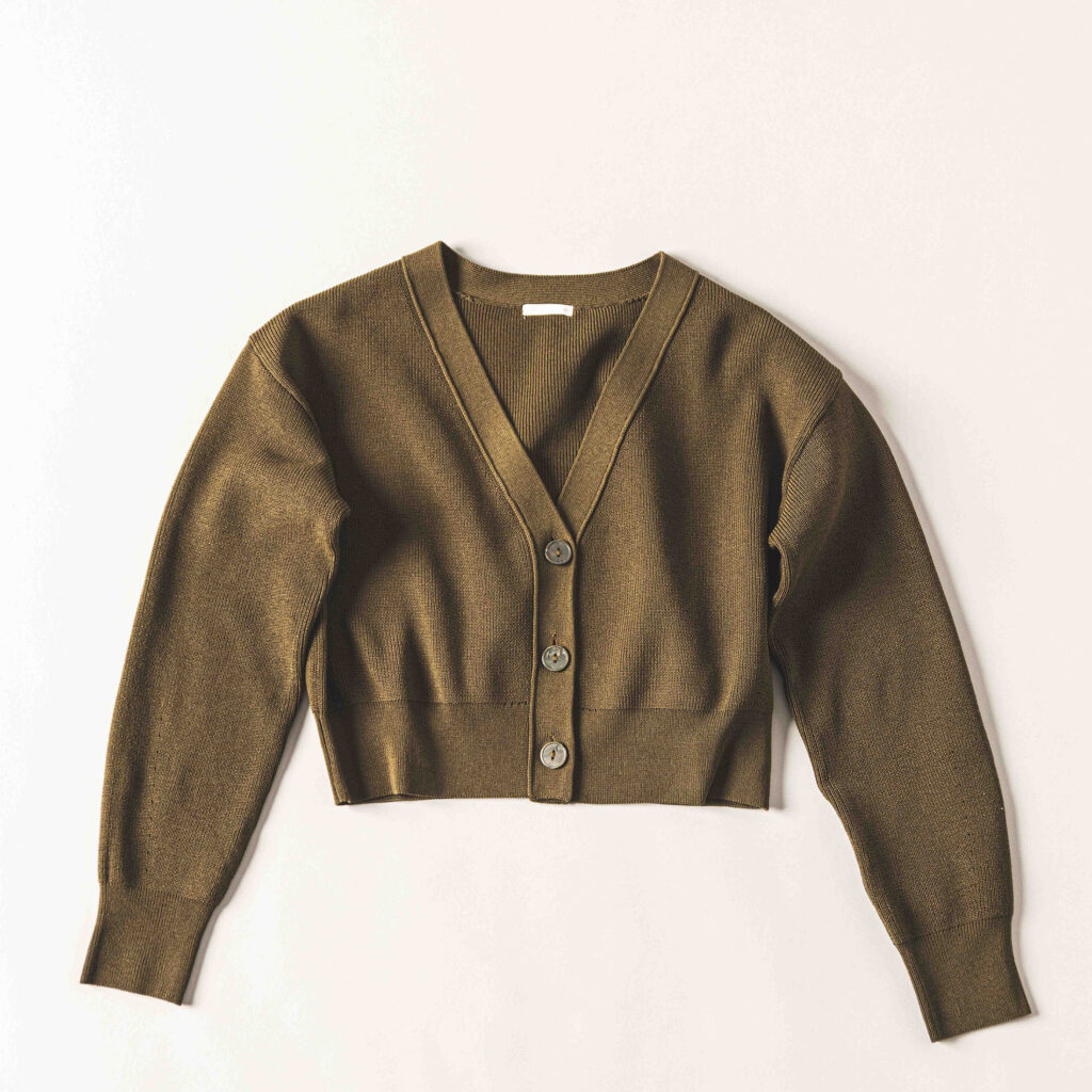手持ちボトムスにも合わせやすいベーシックな丈短カーディガン