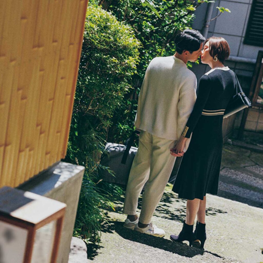 [ユウタくん]カーディガン¥122,100〈ラルディーニ〉トップス¥20,900〈チルコロ1901〉靴¥33,000〈オートリー〉(すべてトヨダトレーディング プレスルーム)パンツ¥75,900(イレブンティ/三喜商事)ボストンバック¥115,500(トゥミ/トゥミ・カスタマーセンター)[エステ社長]ワンピース¥86,900(コルコバード/フィルム)バッグ¥14,300ブーツ¥28,600(ともにダイアナ/ダイアナ 銀座本店)ピアス¥45,900(アビステ)