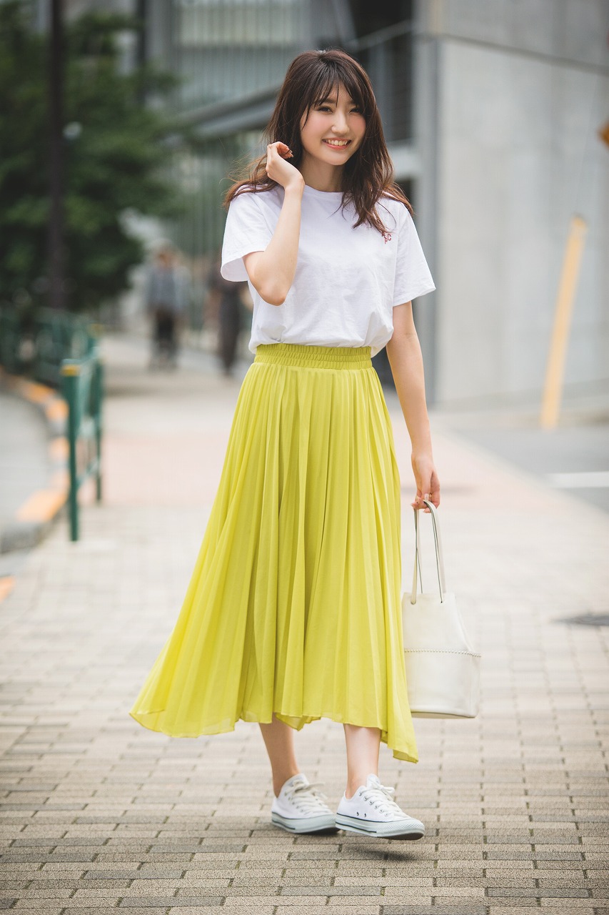 Tシャツ:UNIQLO スカート:ROPE PICNICバッグ:J&M Davidson スニーカー:CONVERSE
