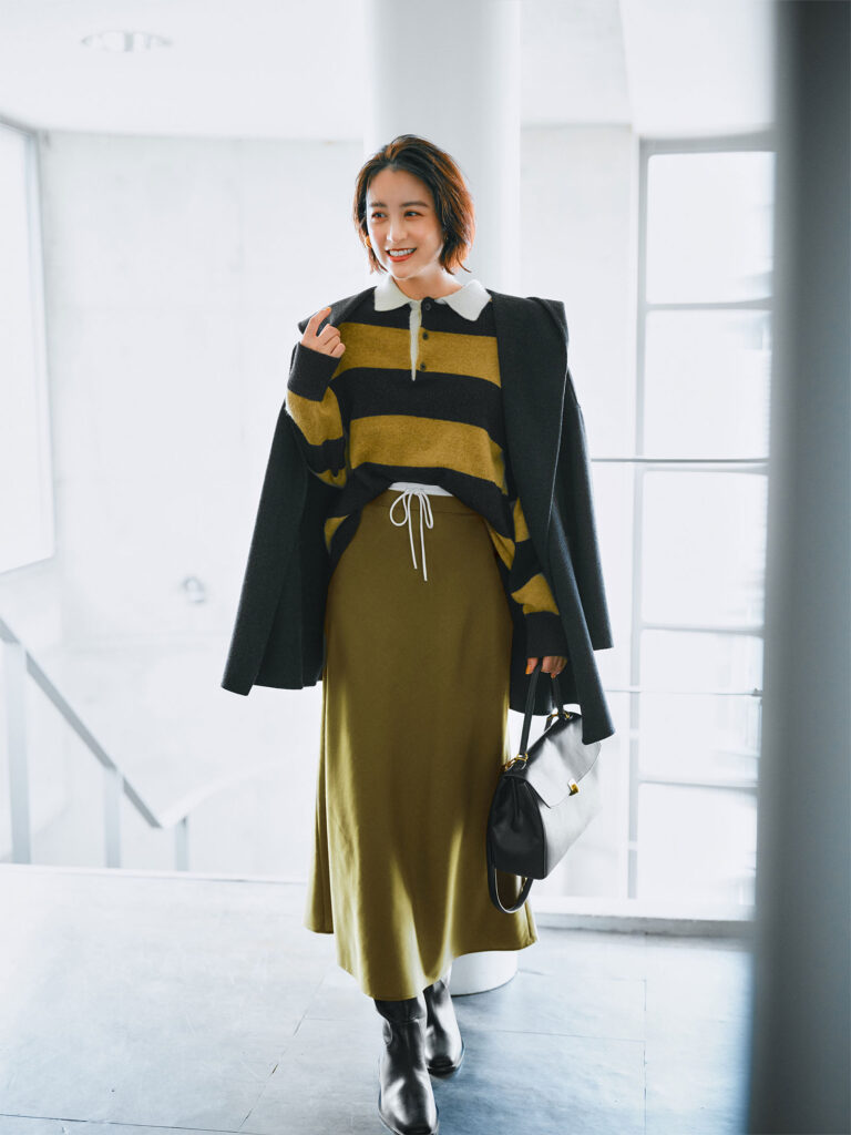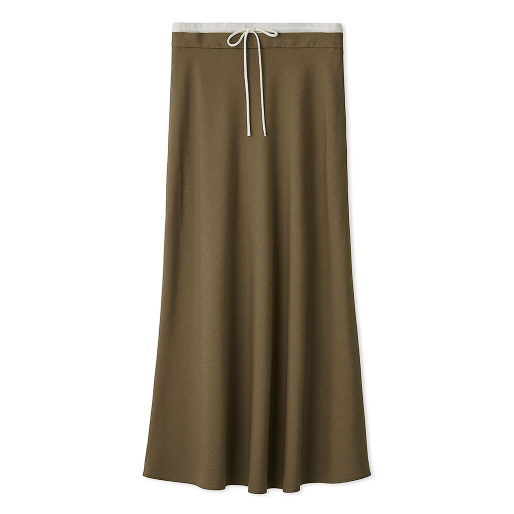 ストレスフリーな着心地でさらにスタイルアップも叶えてくれるスカートは忙しい女子の心強い味方。ストンとしたシルエットが今どきなナロースカートは、レイヤード風のダブルウエストデザインがこなれポイント。合わせるトップスを選ばない万能スカートのおかげで、ラガーニットもオフィス仕様に。