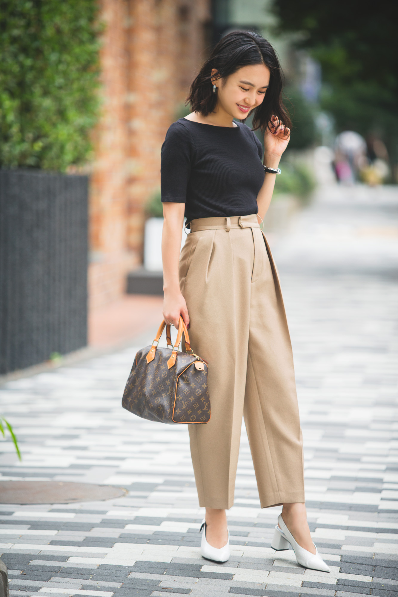 Tシャツ:GU ボトムス:STUNNINGLURE バッグ:LOUIS VUITTON パンプス:ZARA