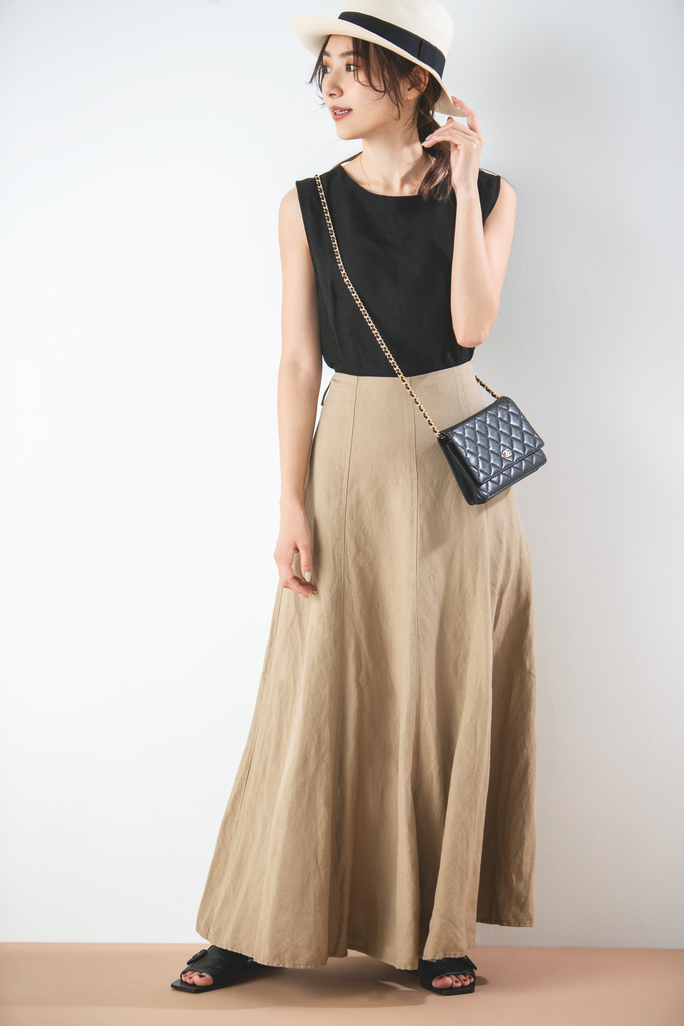 ハット:IÈNA トップス:STORY NINE スカート:Mila Owen バッグ:CHANELサンダル:CHARL’S KEITH