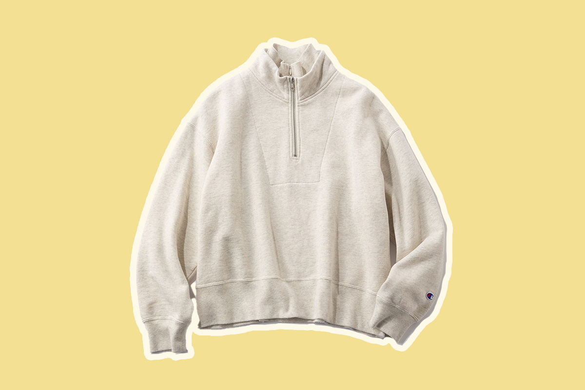 トレンドのハーフジップ仕様は顎をシャープに演出。¥12,980(チャンピオン/ヘインズブランズ ジャパン カスタマーセンター)